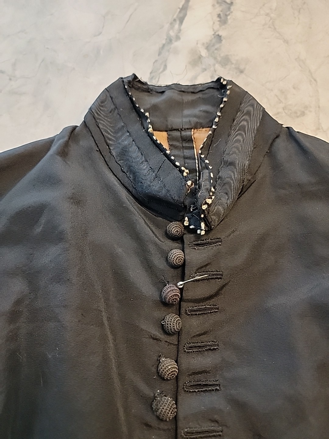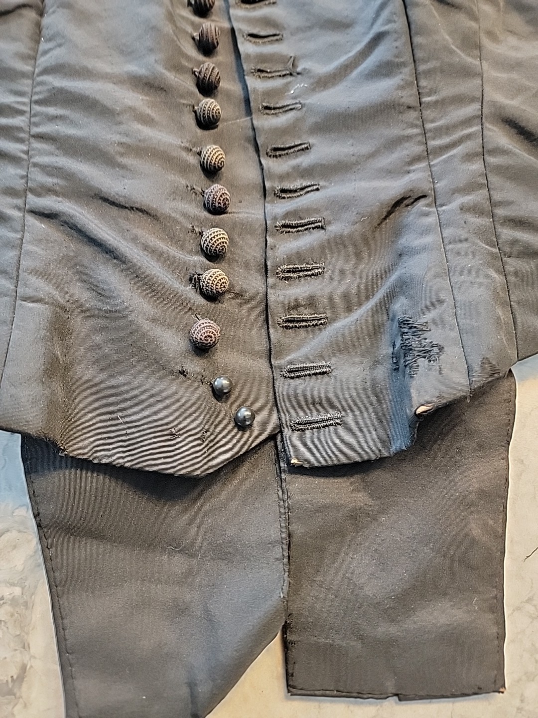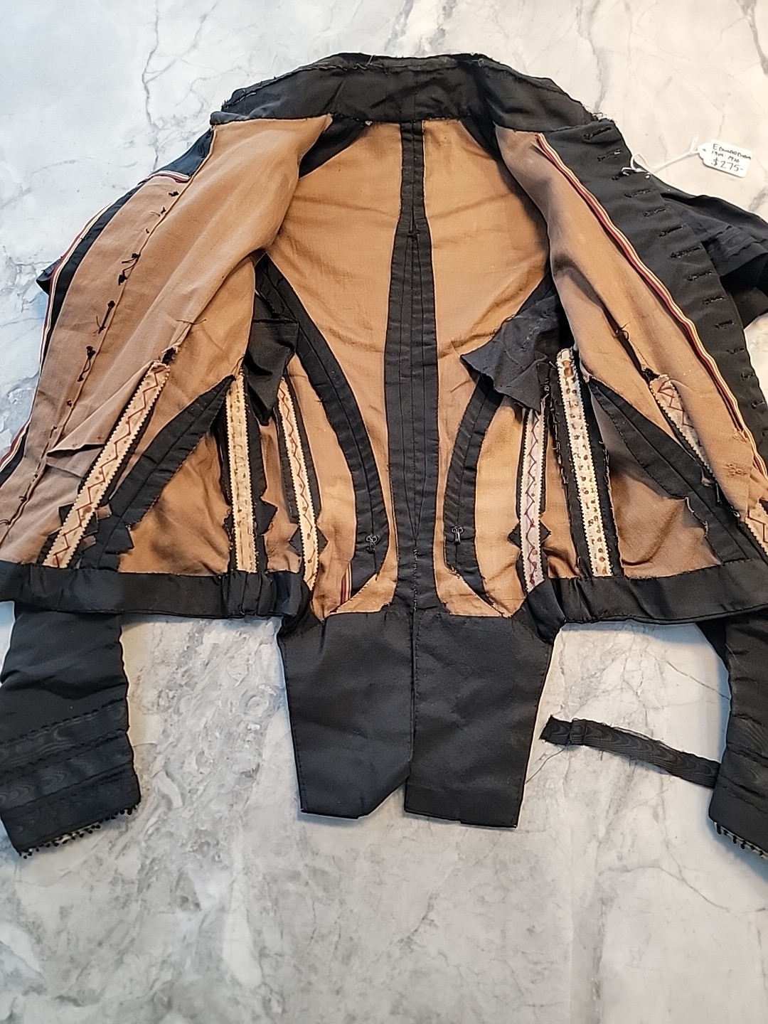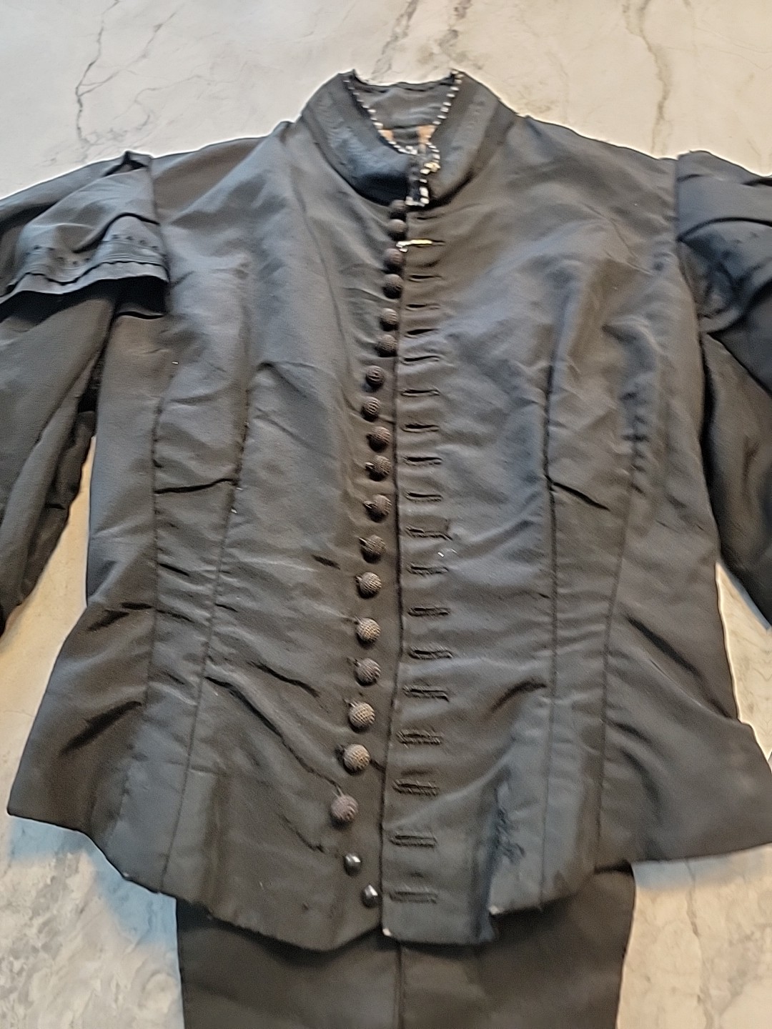 как выглядит C 1870 S BLACK Boned BODICE HANDMADE LACE EDGING AND Skirt Edwardian Victorian фото