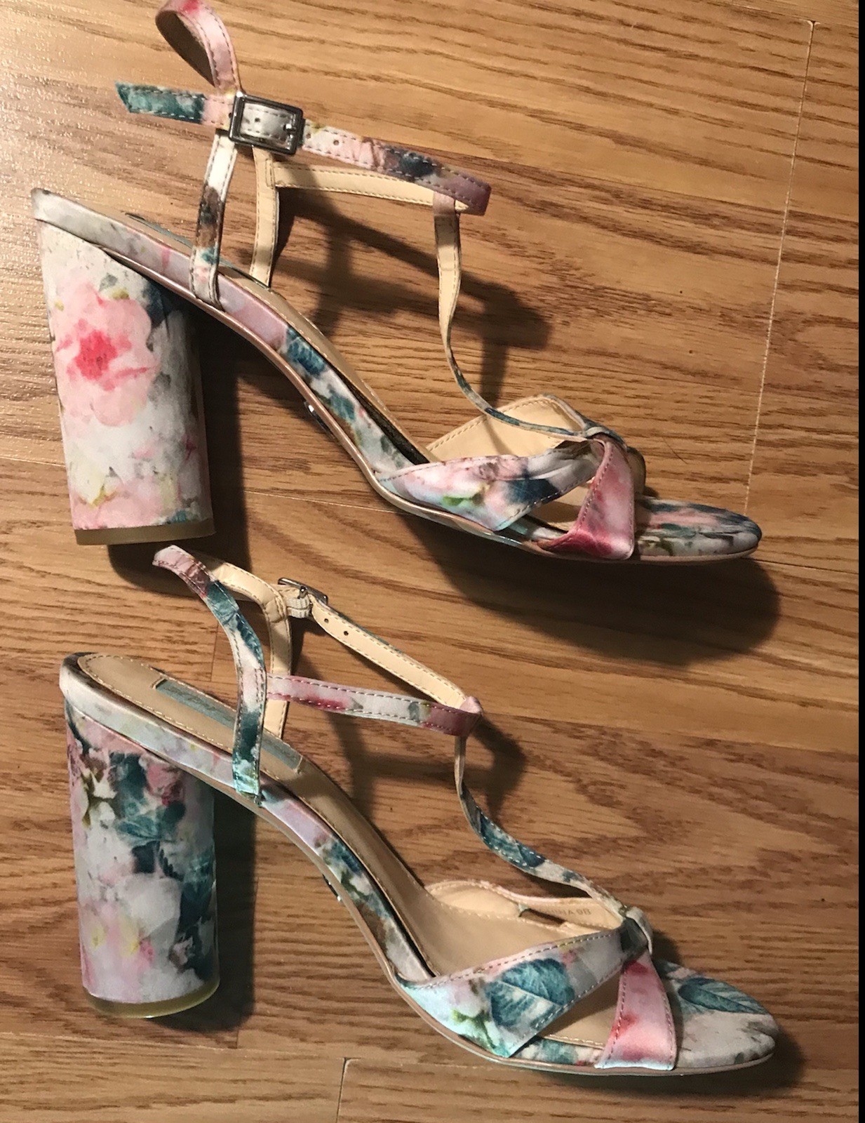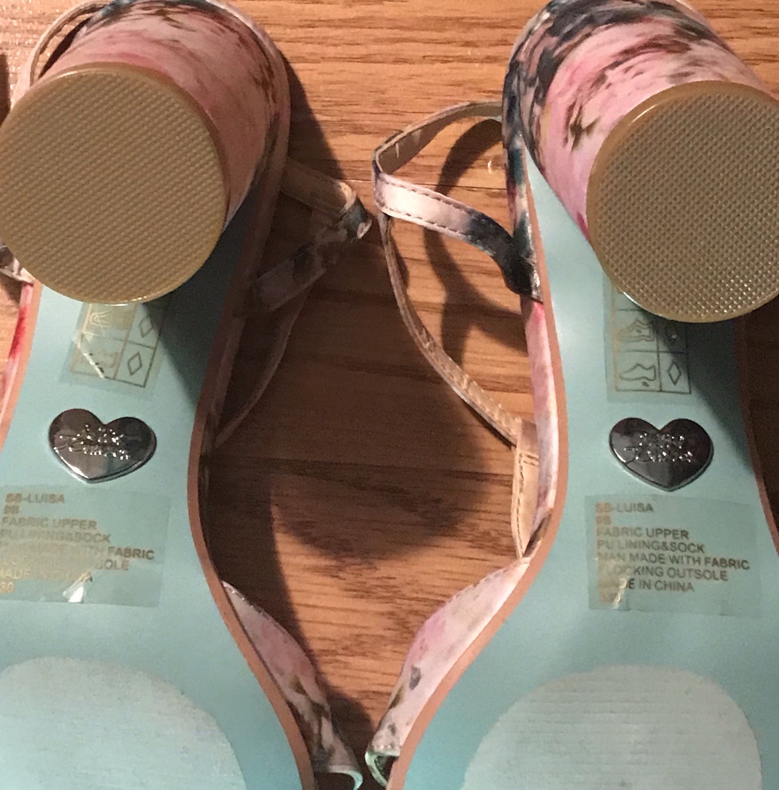 как выглядит Betsey Johnson SB Luisa Blue Pink Floral High Heel Strappy Sandal Shoes Size 9 фото