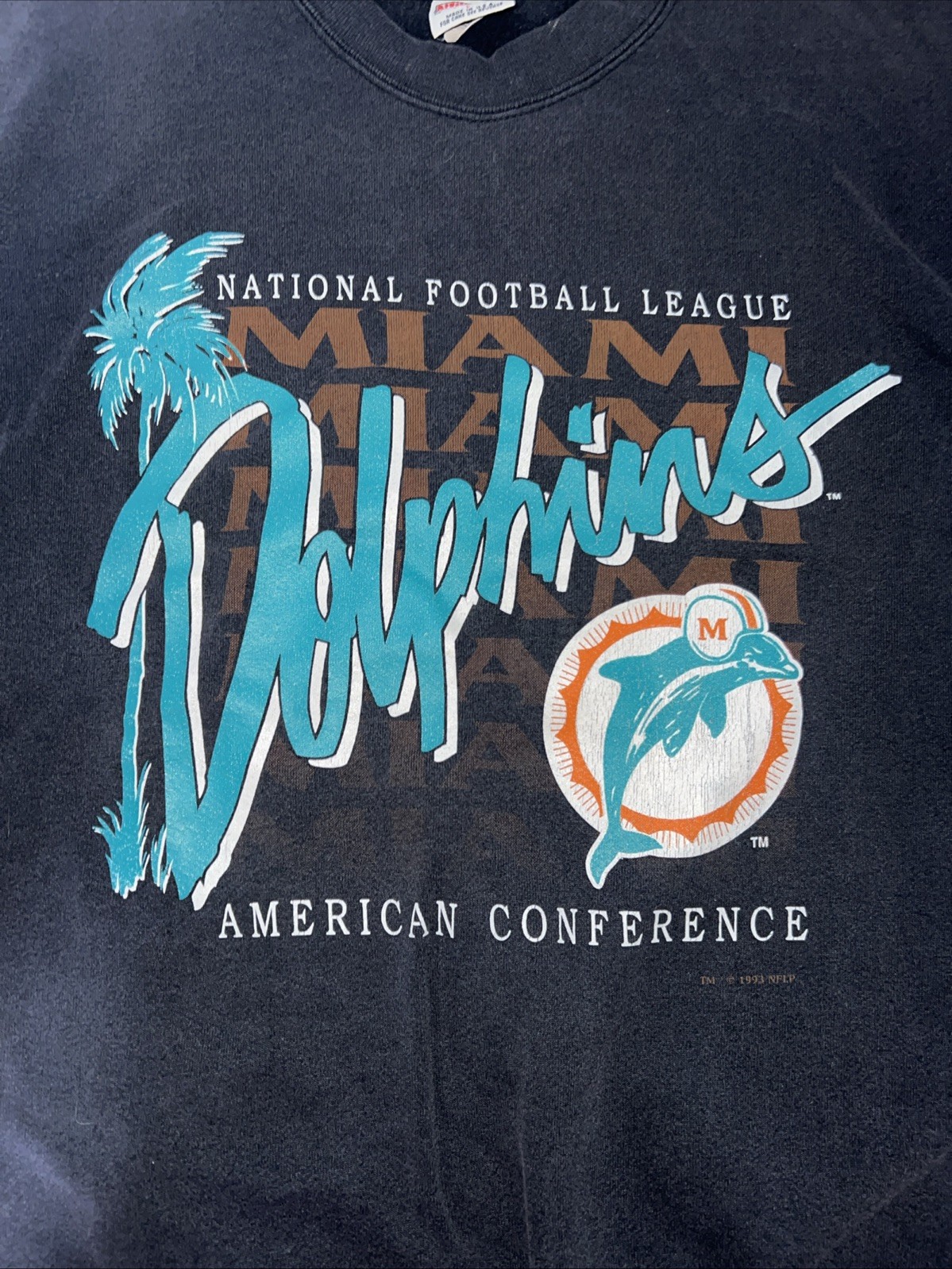 как выглядит Vintage Miami Dolphins Nutmeg Crew Neck Sweatshirt Black Size Large фото