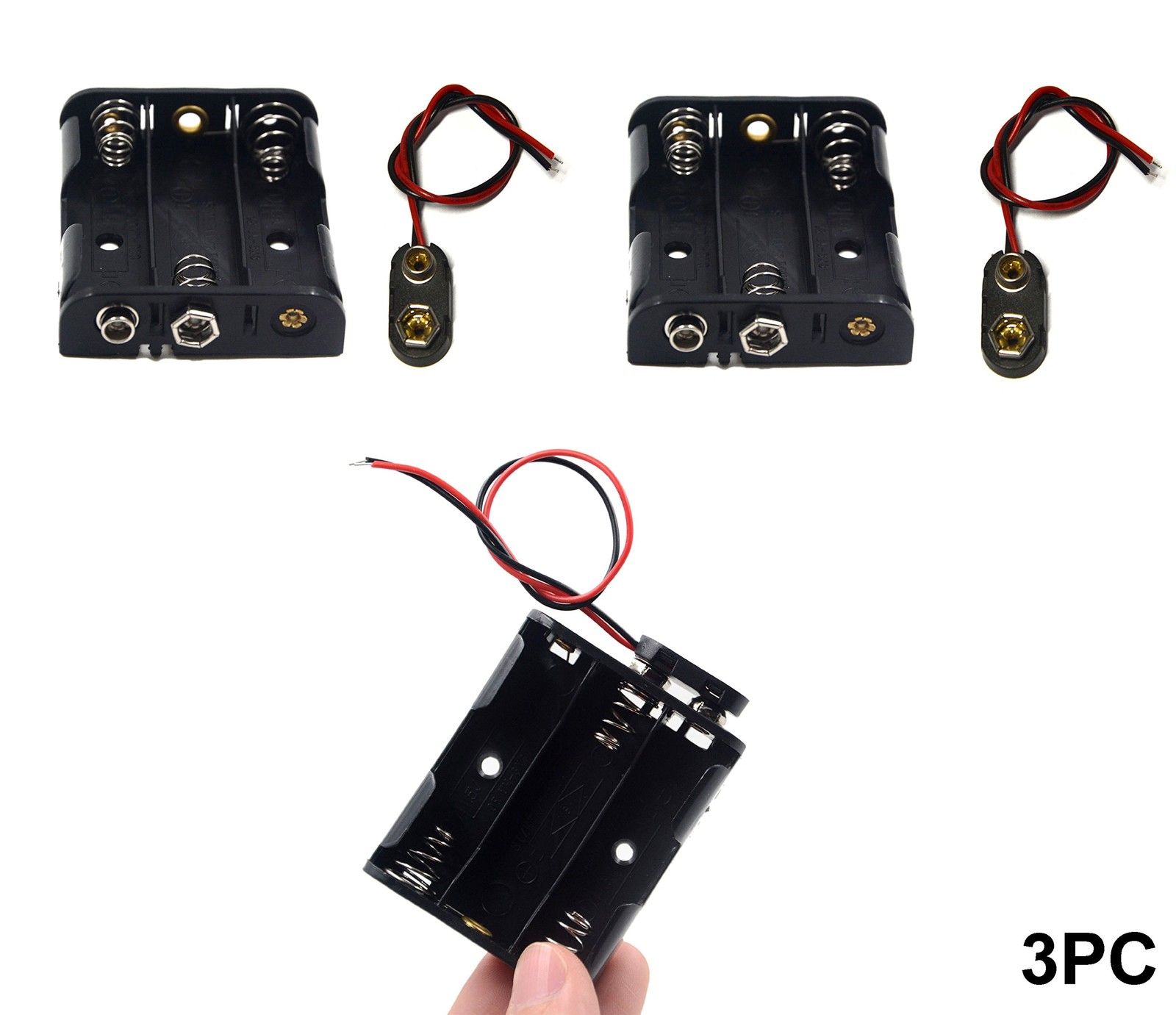 как выглядит 3 Pcs 3 X 1.5v 4.5v Aa Battery Holder Leads With 3 Pcs I Type Snap Connector P фото