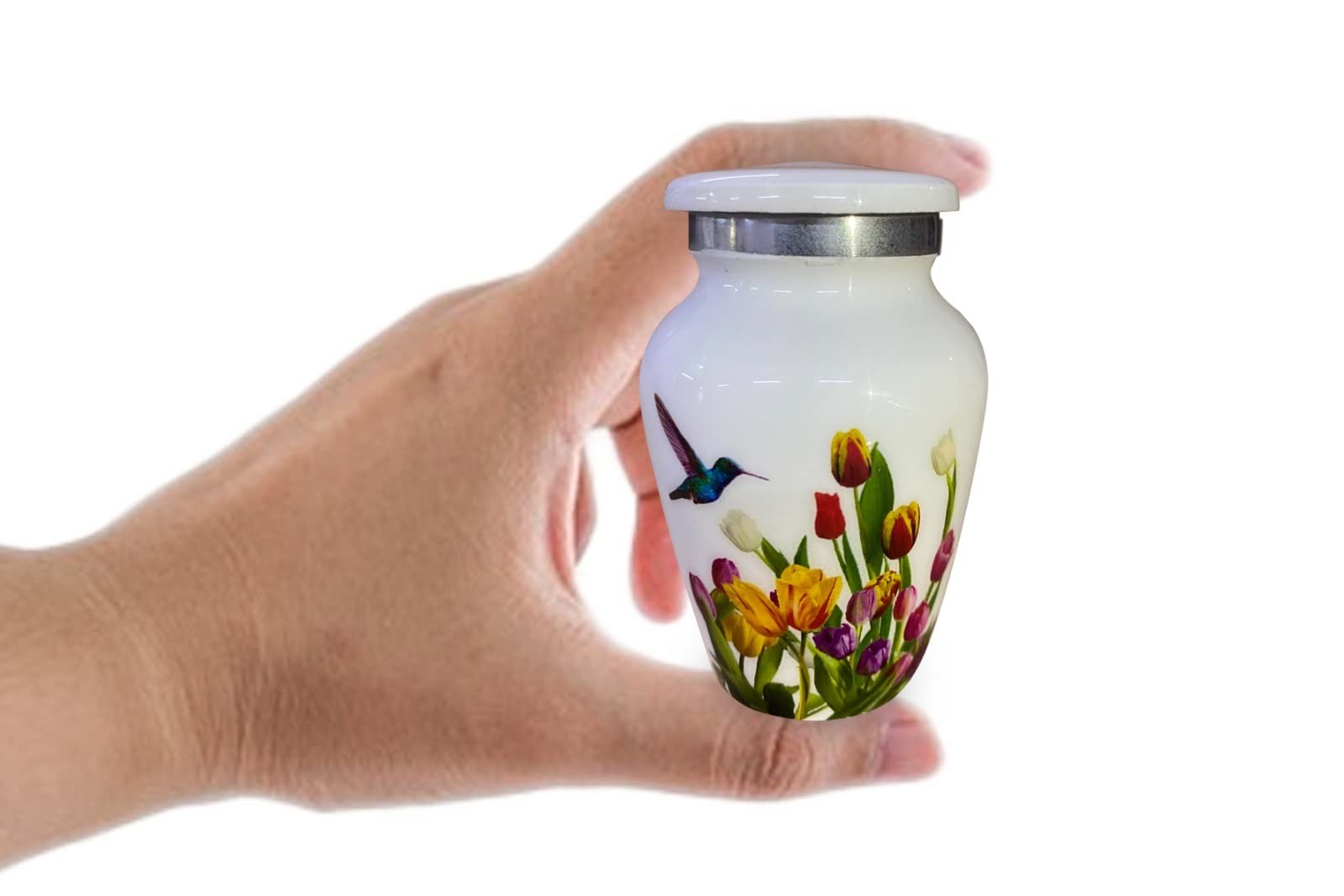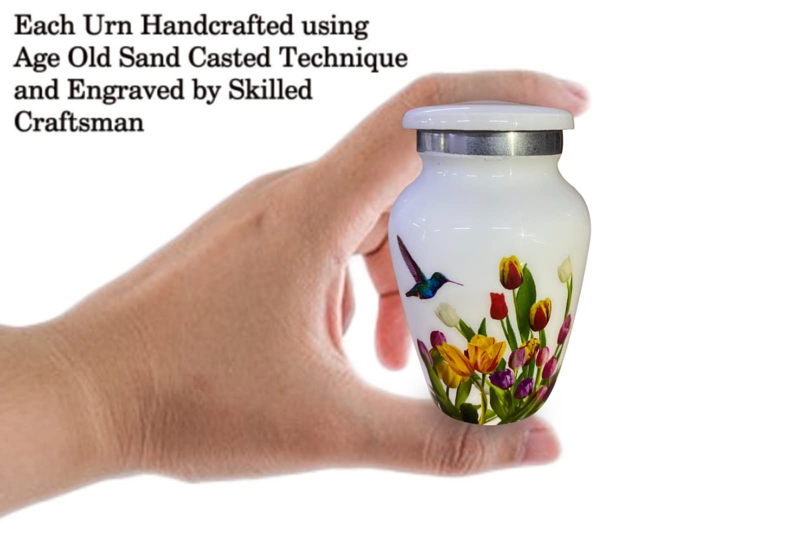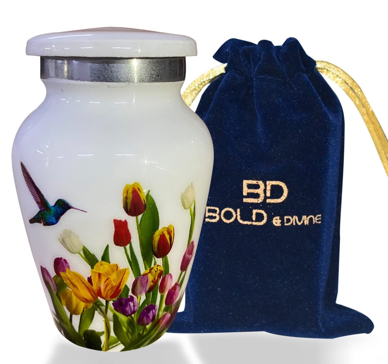 BOLD DIVINE Handcrafted Hummingbird Cremation Urn for Adults Small, White