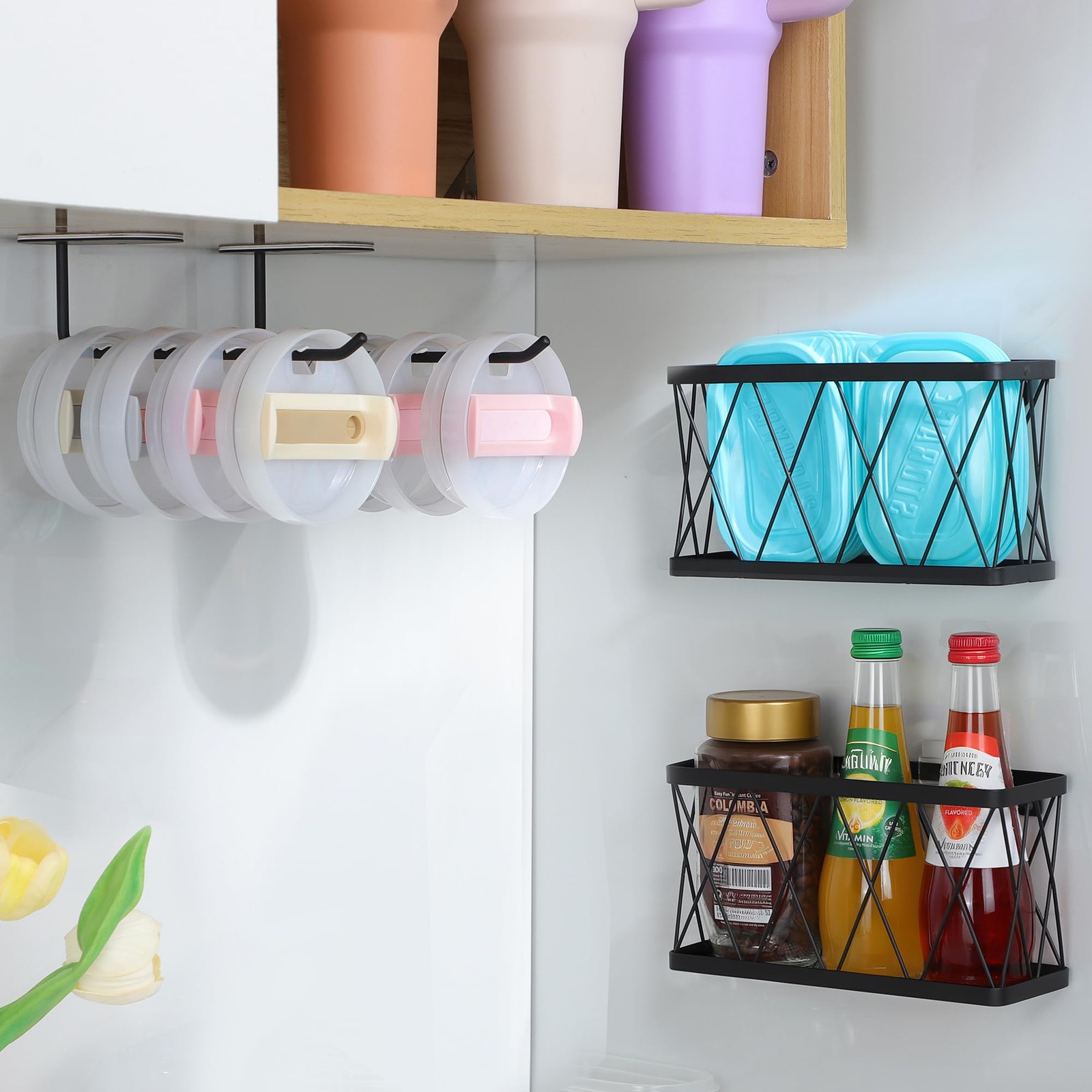 Adhesive Cabinet Door Organizer, 4 Pack Lid Organizers Inside Cabinet Food Co...