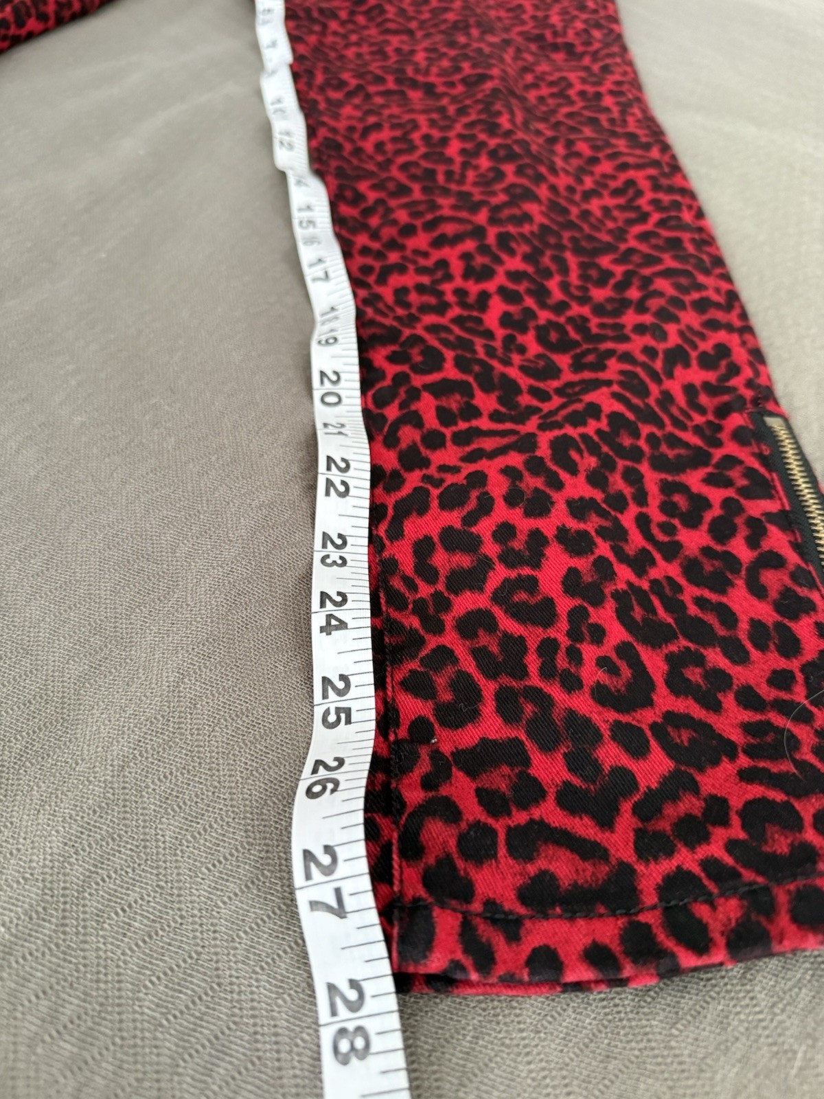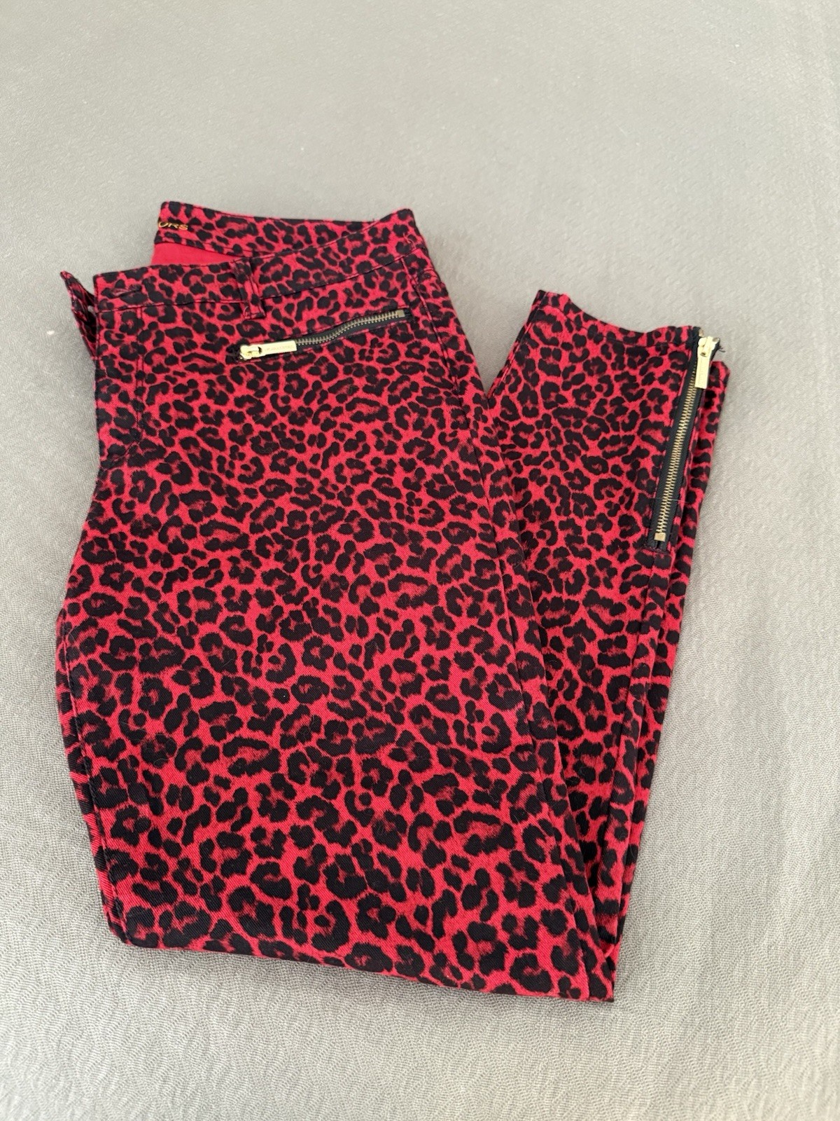 как выглядит Michael Kors Skinny Red Black Zipper Accents Ankle Leopard Jeans Punk 12 фото