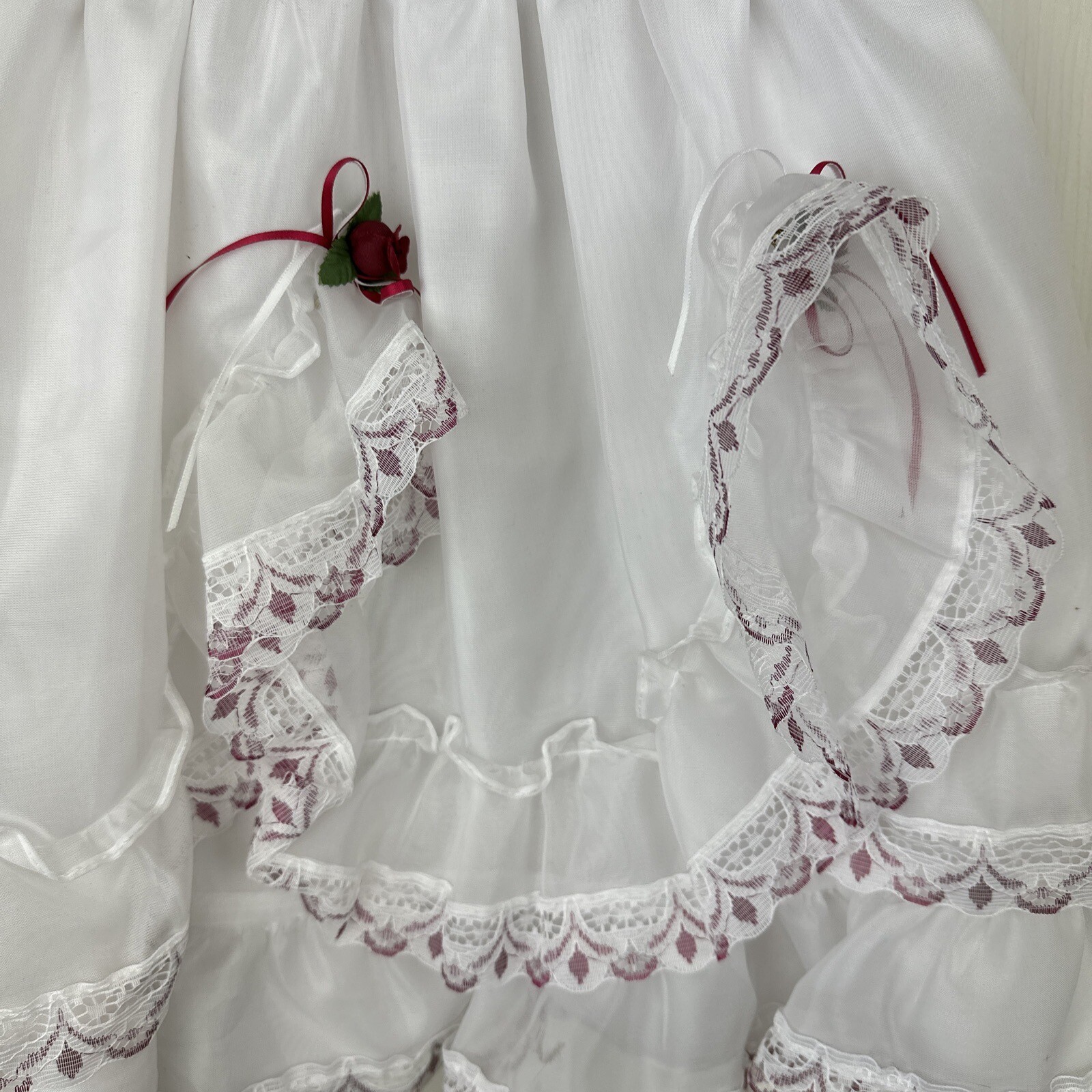 как выглядит Vtg Pageant Party Dress Full Circle Ruffles Satin Lace Sheer Layer Sz10 Burgundy фото