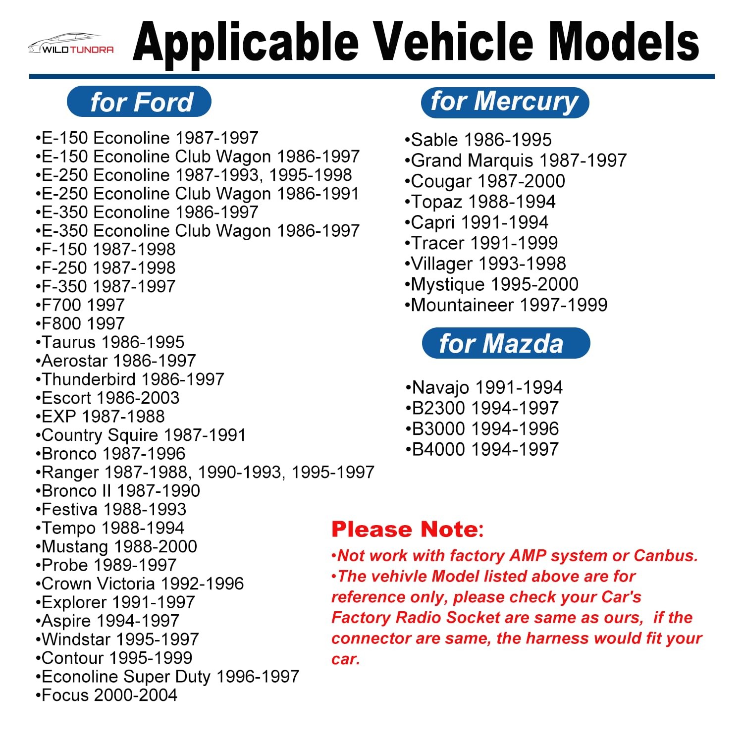 16Pin ISO Aftermarket Radio Harness Adapter for Ford 1986-2004 Mercury...