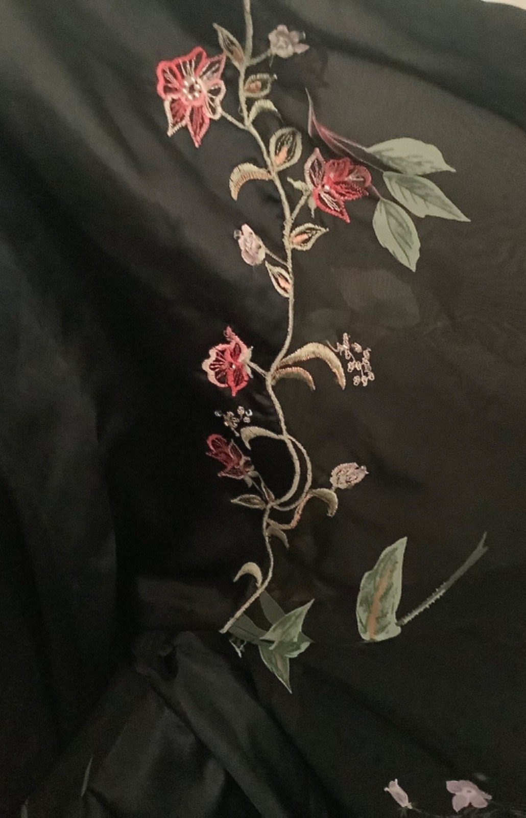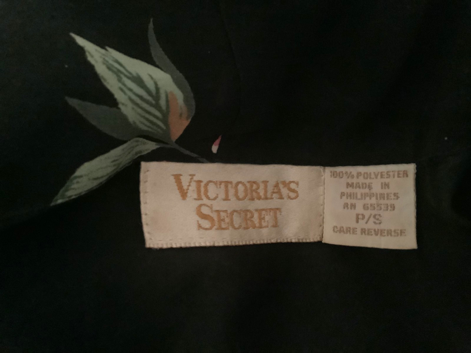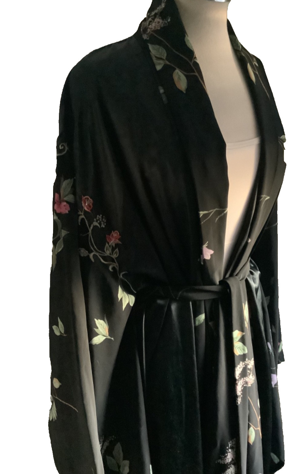 как выглядит Victoria s Secret S/M Black Satin Floral Embroidered TRUE Kimono Sleeve Robe фото