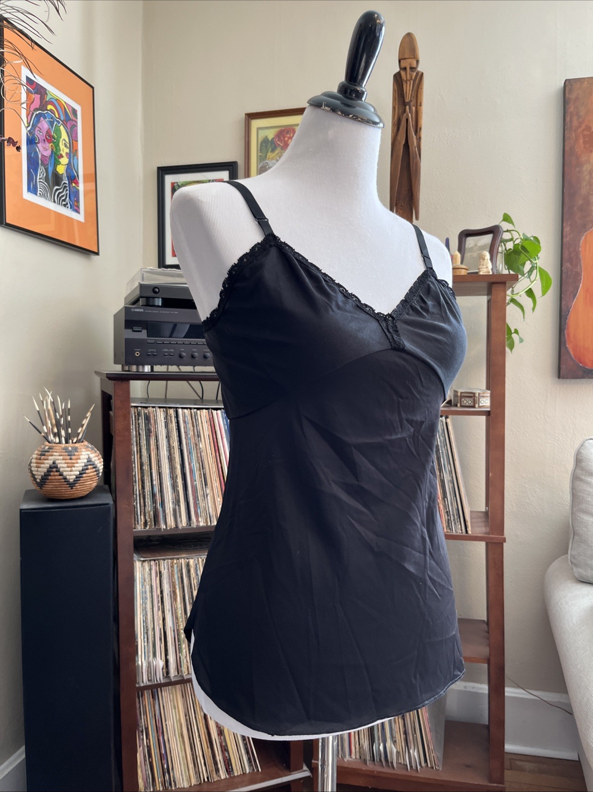 Vintage M ShadowLine Camisole Baby Doll Slip Tank Black 100 Nylon Adjustable
