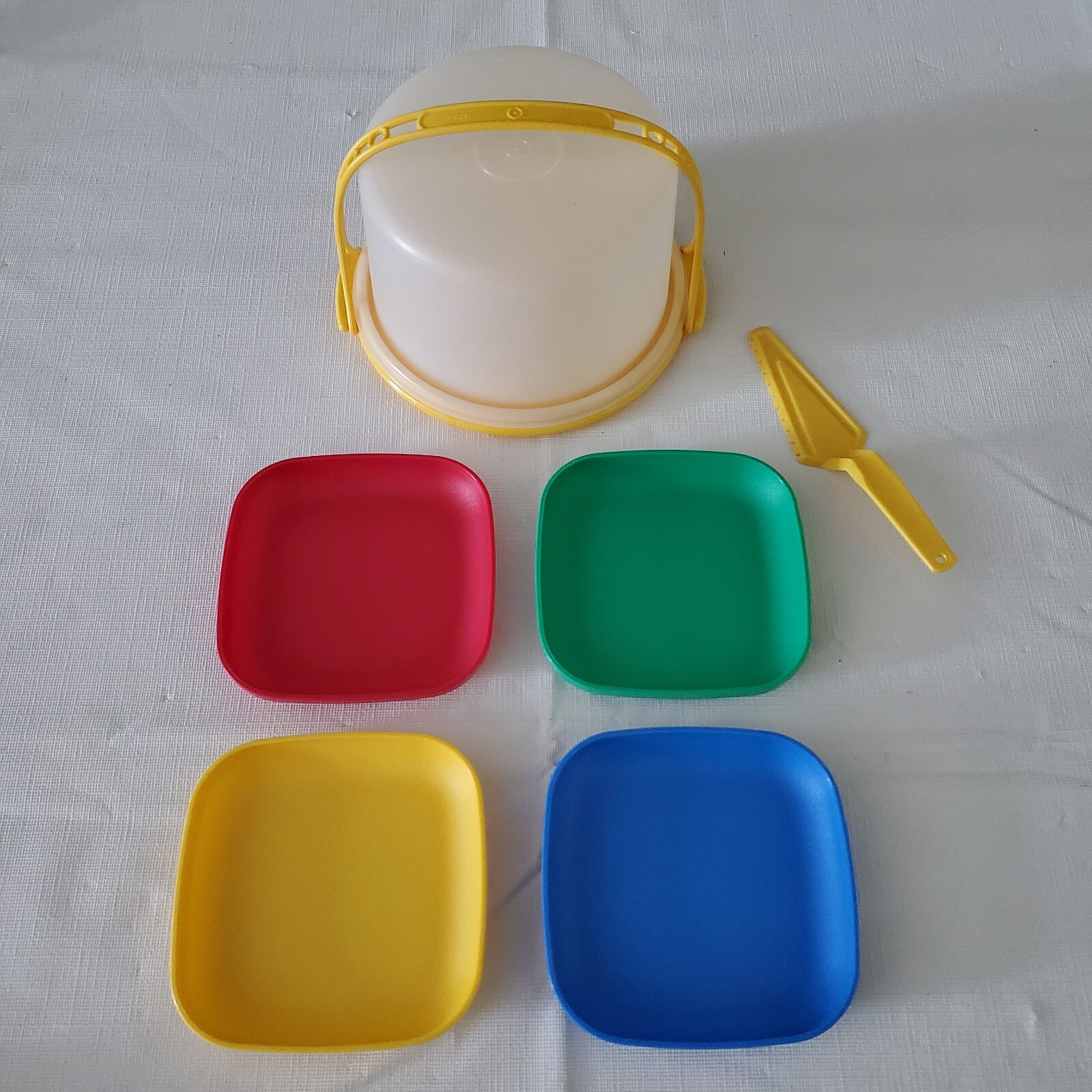 TUPPERWARE Toys Kids Mini Cake Taker 4 Plates and Serving Tool Primary Colors