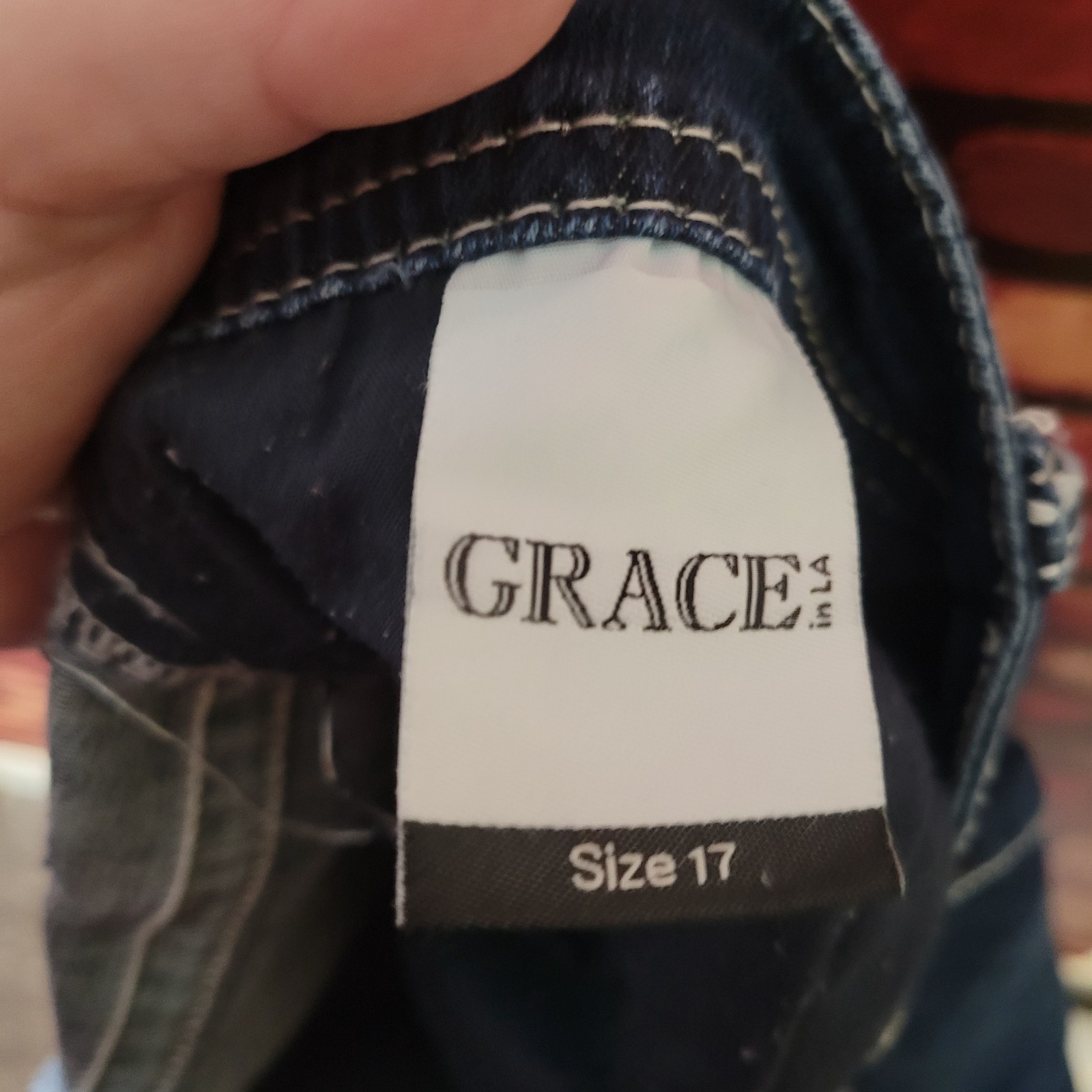как выглядит Grace in LA Womens Size 17 Light Wash Rhinestone Cowgirl Jeans Bling фото