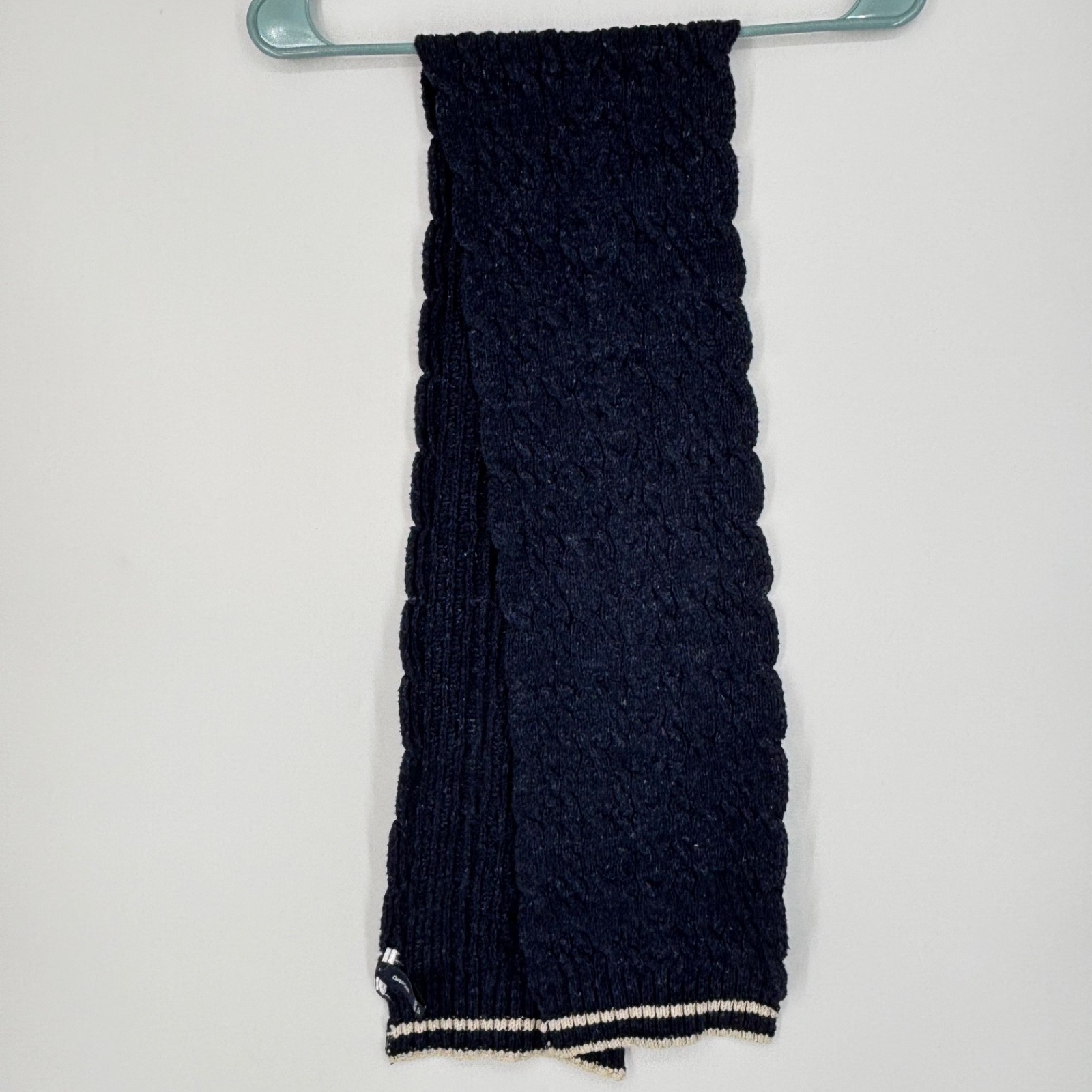 Gap Kids Unisex Rectangle Winter Scarf Navy Blue Cream Stripes Cable Knit Cotton