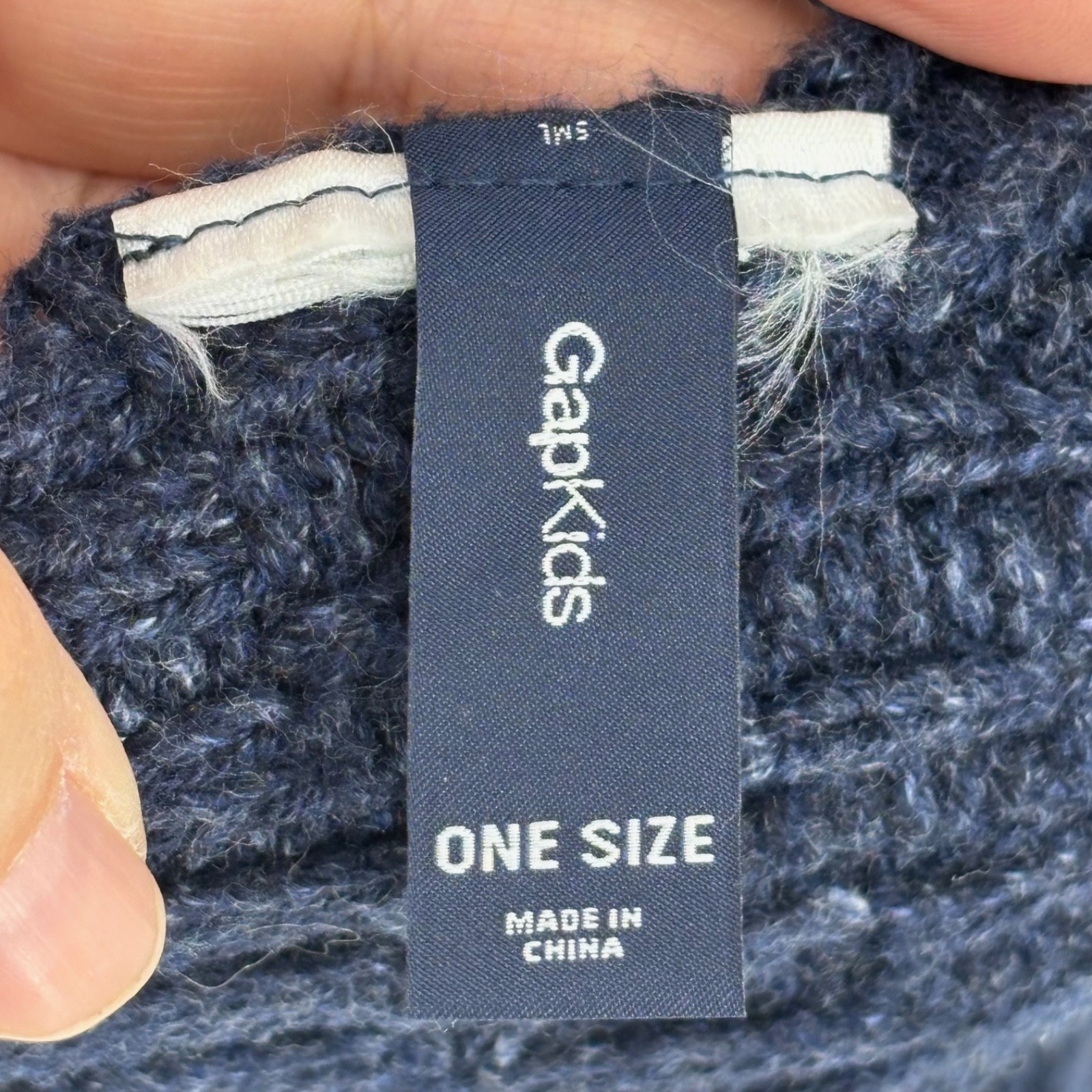 как выглядит Gap Kids Unisex Rectangle Winter Scarf Navy Blue Cream Stripes Cable Knit Cotton фото