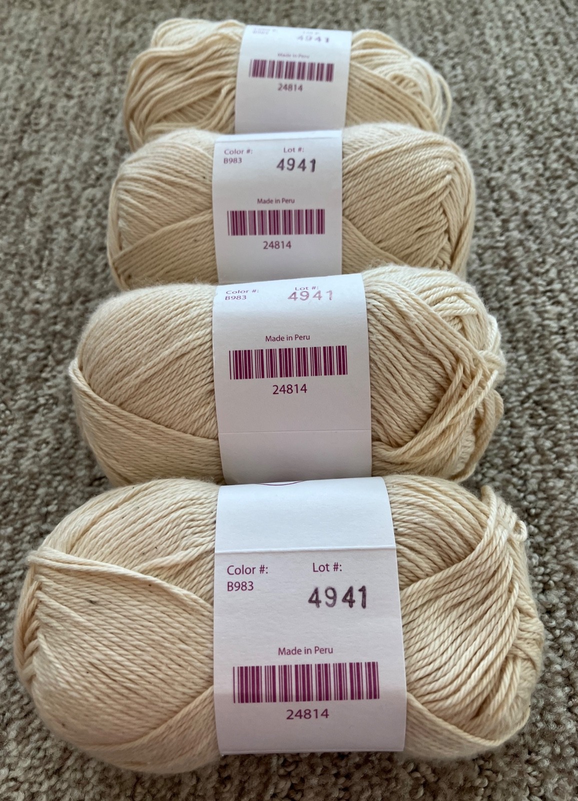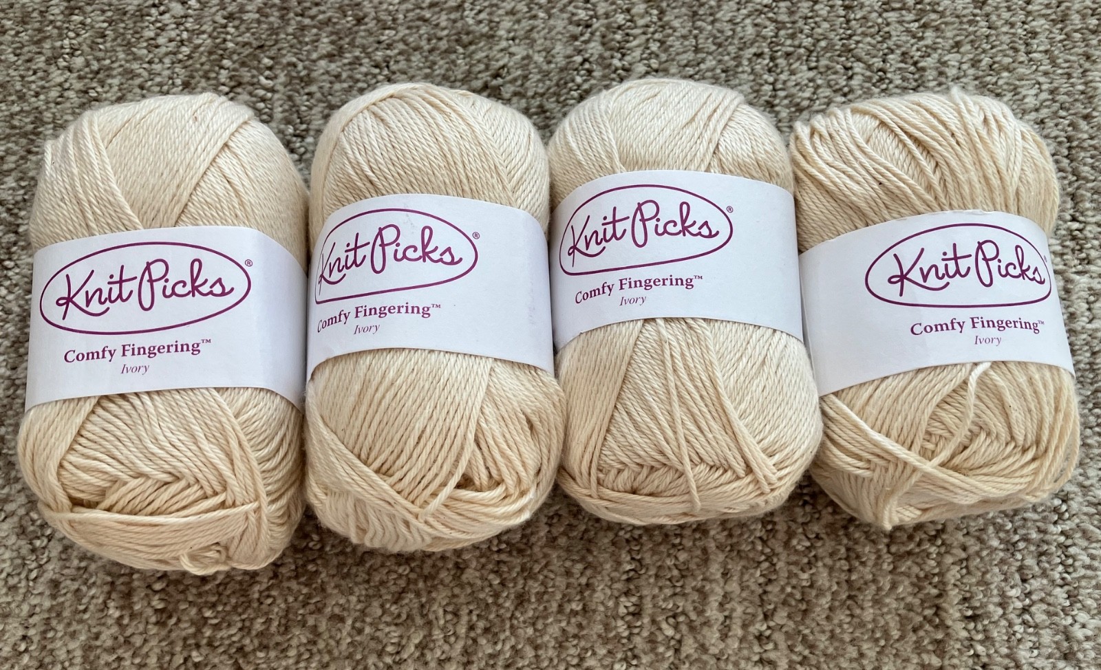 4 skeins of Knit Picks fingering/sock yarn Ivory color B983