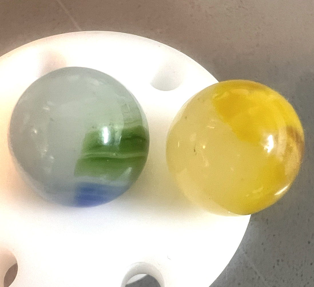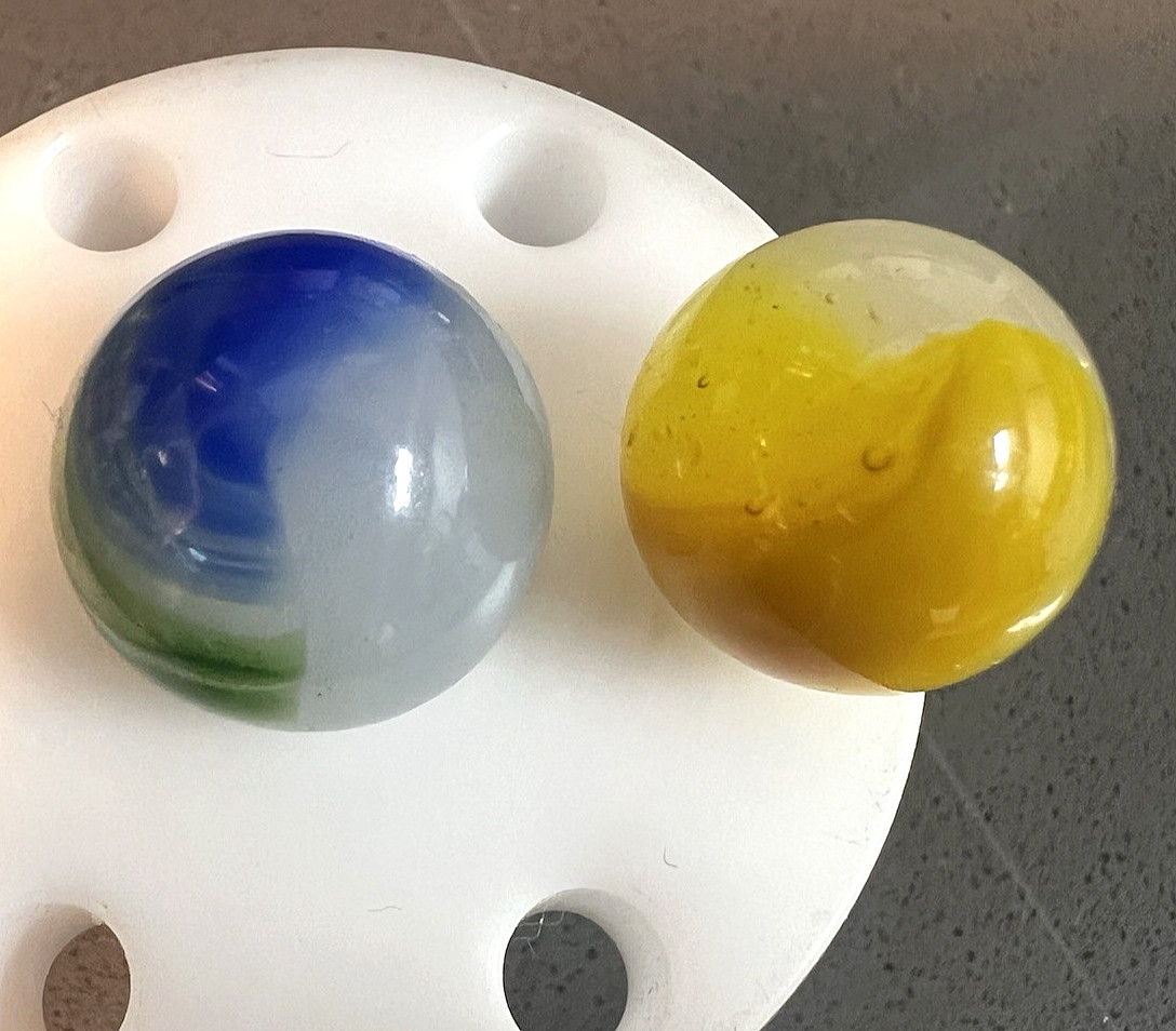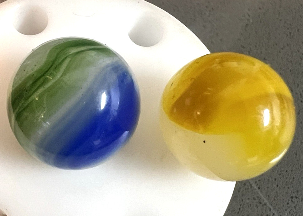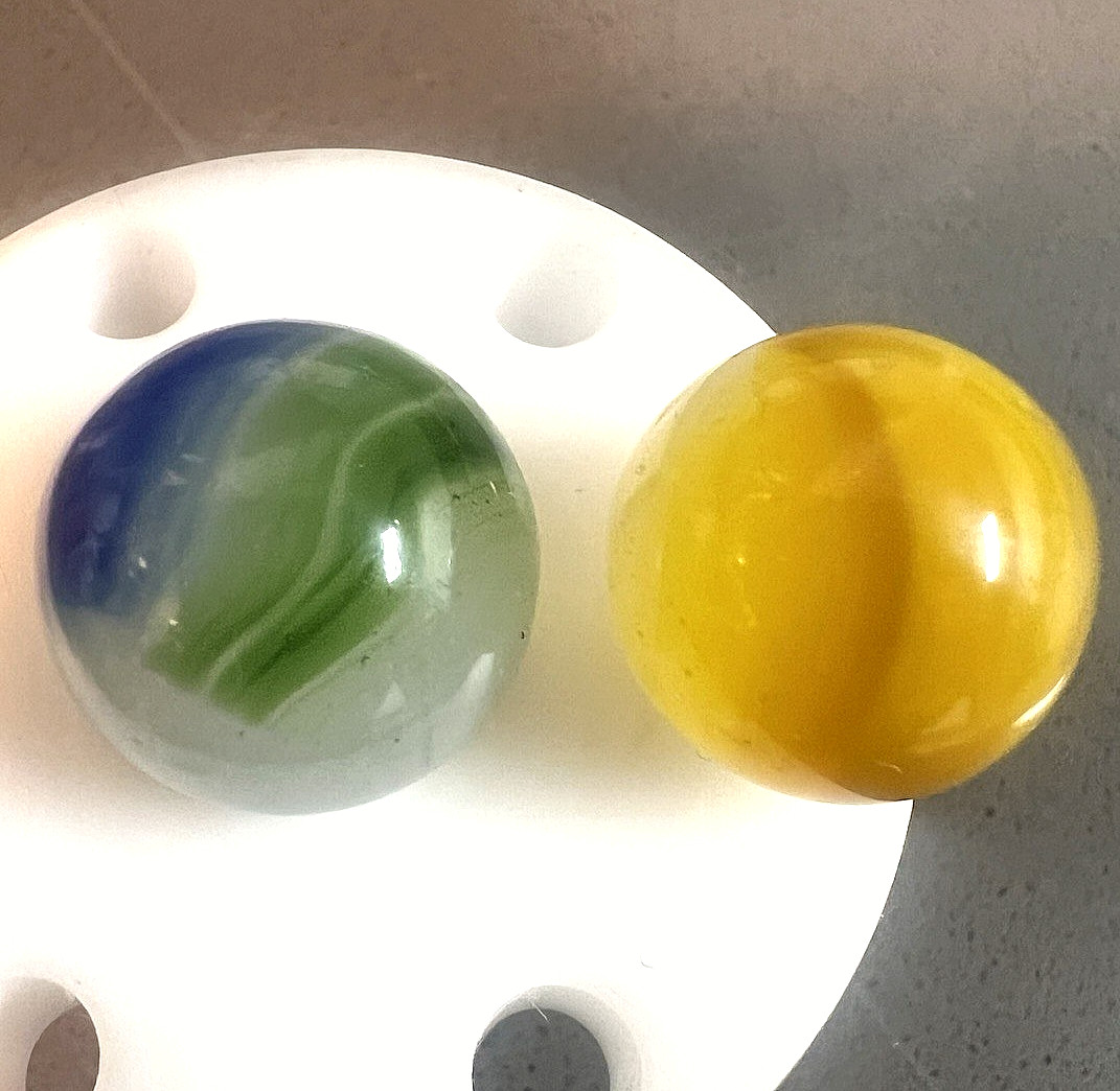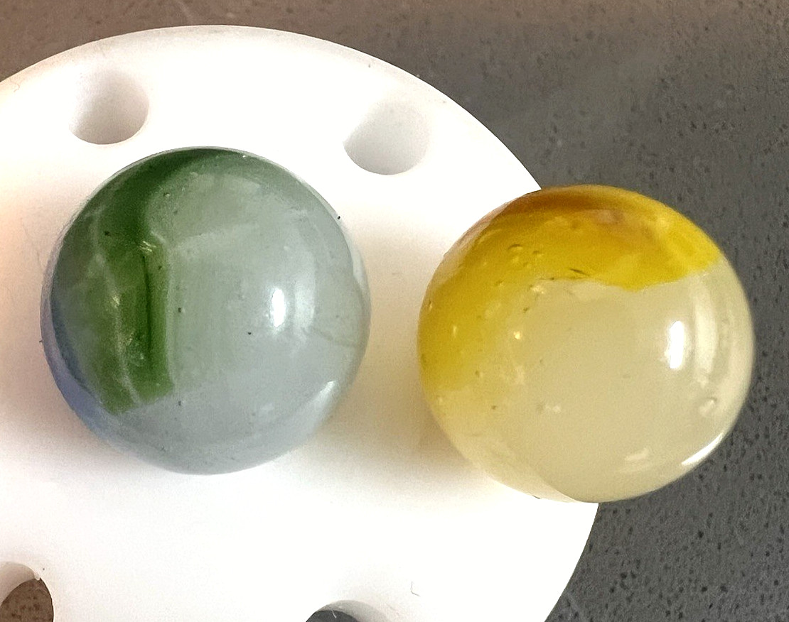 2 Akro Moss Agate/Master Patch Marbles Bright Lemonaid 2 color .63 - .685