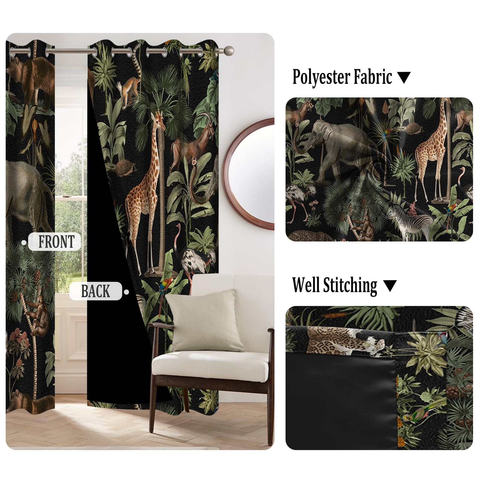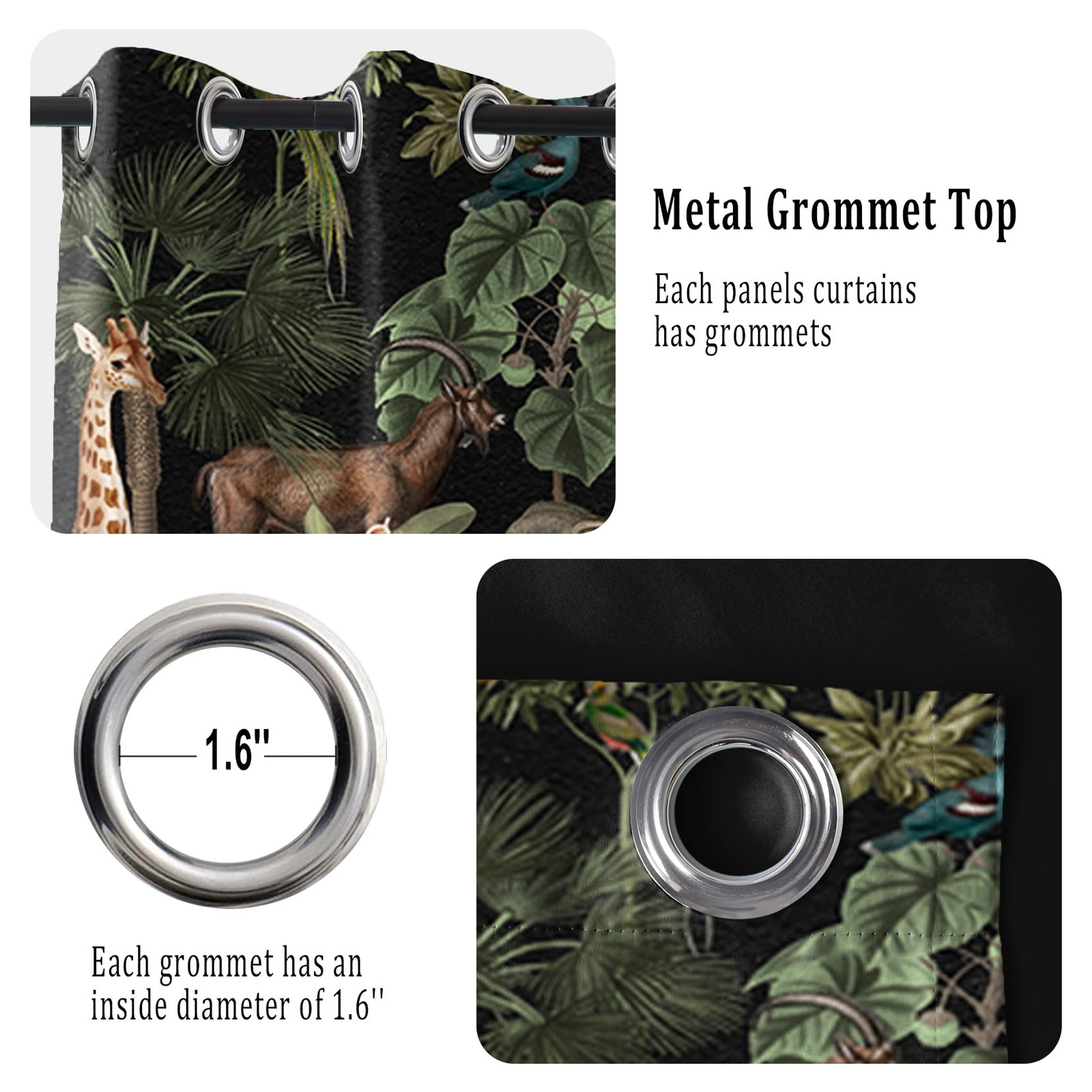 как выглядит Tropical Animals Blackout Curtains for Bedroom Jungle Forest Safari Wildlife ... фото