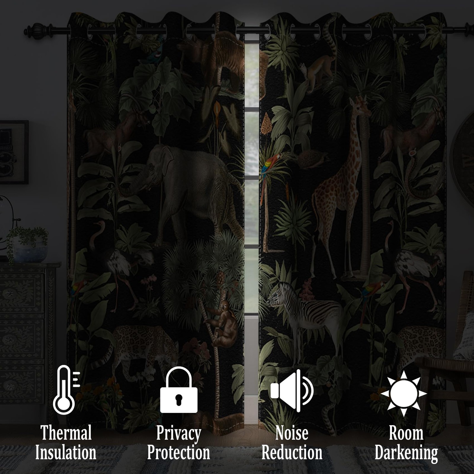 Tropical Animals Blackout Curtains for Bedroom Jungle Forest Safari Wildlife ...