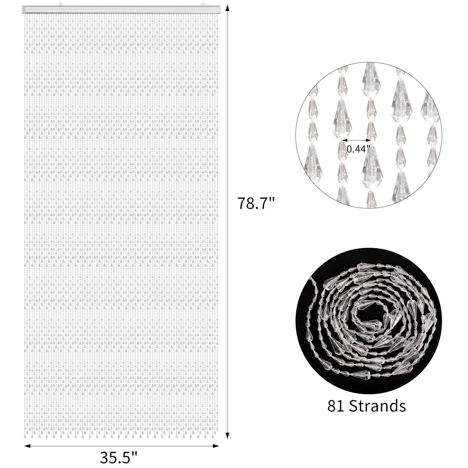 Crystal Beaded Curtain 81 Strands Acrylic Hanging Door Beads String Curtain R...