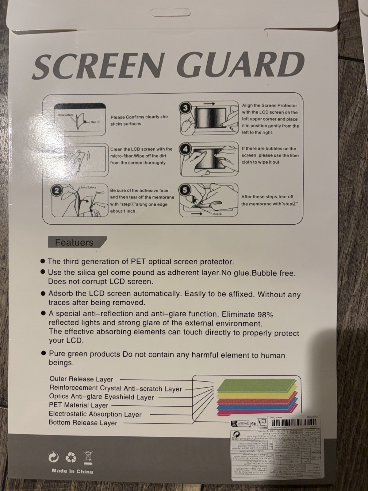Особенности: Anti-Scratch, High Definition, Clear Shield, 99% Transparency, 5H Hardness, Scratch Resistance, High-Quality Japanese PET Film, Easy Installation, No Residue, Anti Fingerprint Coating, Oleophobic, Reduces Smudges, Protects Against Scratches, Protects Against Dust, Protects Against Scrapes