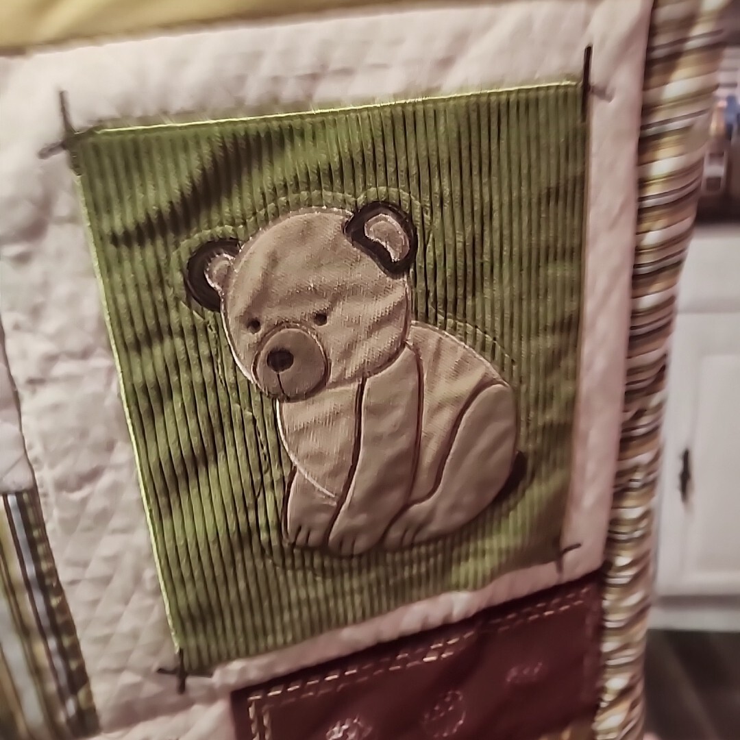 как выглядит Eddie Bauer Nursery Crib Quilt Forrest Animals Corduroy фото