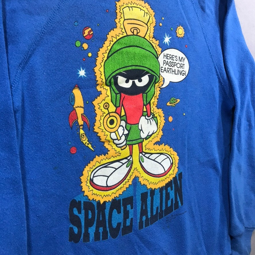 Vintage LOONEY TUNES Sweatshirt MARVIN THE MARTIAN Kids Boys Medium Blue 90s
