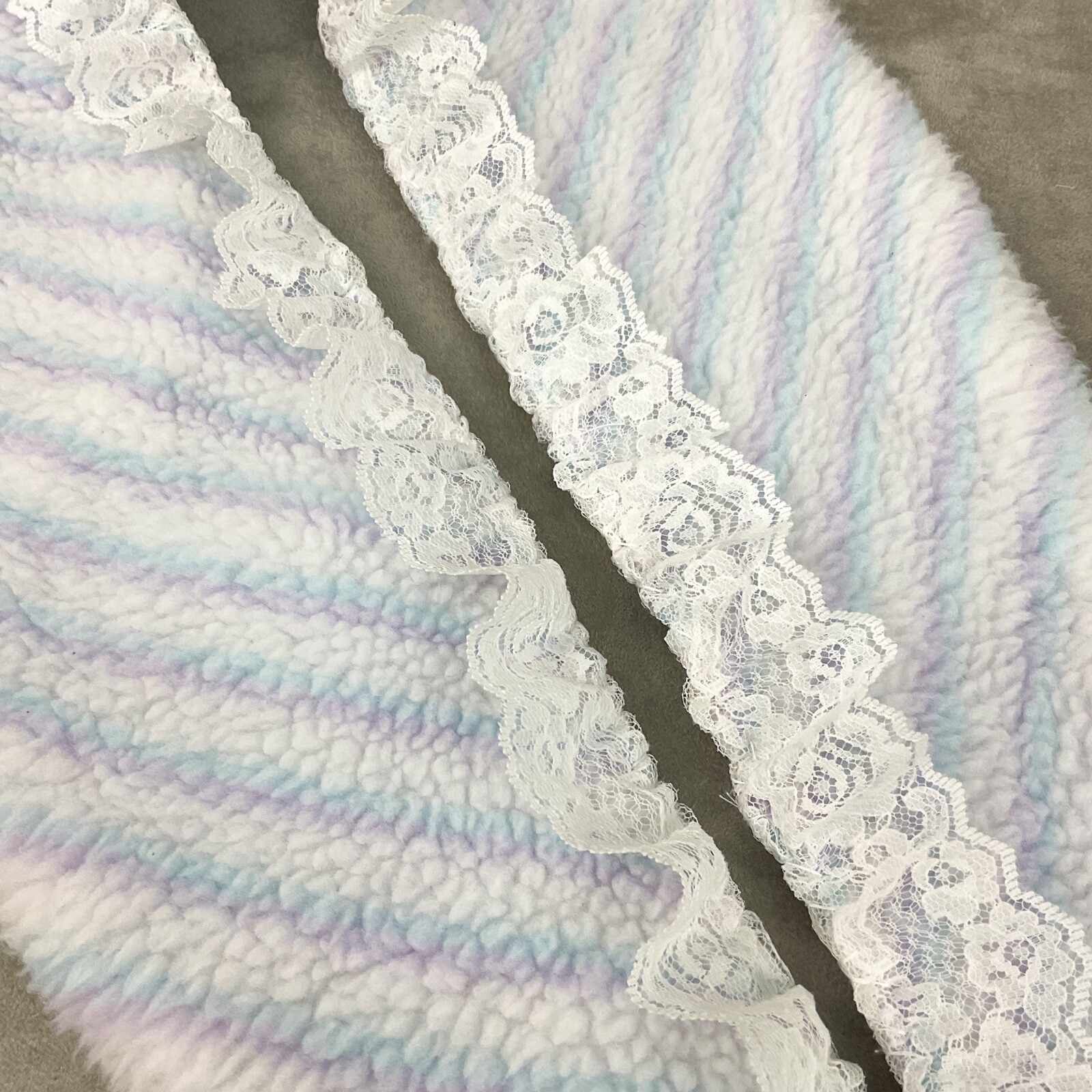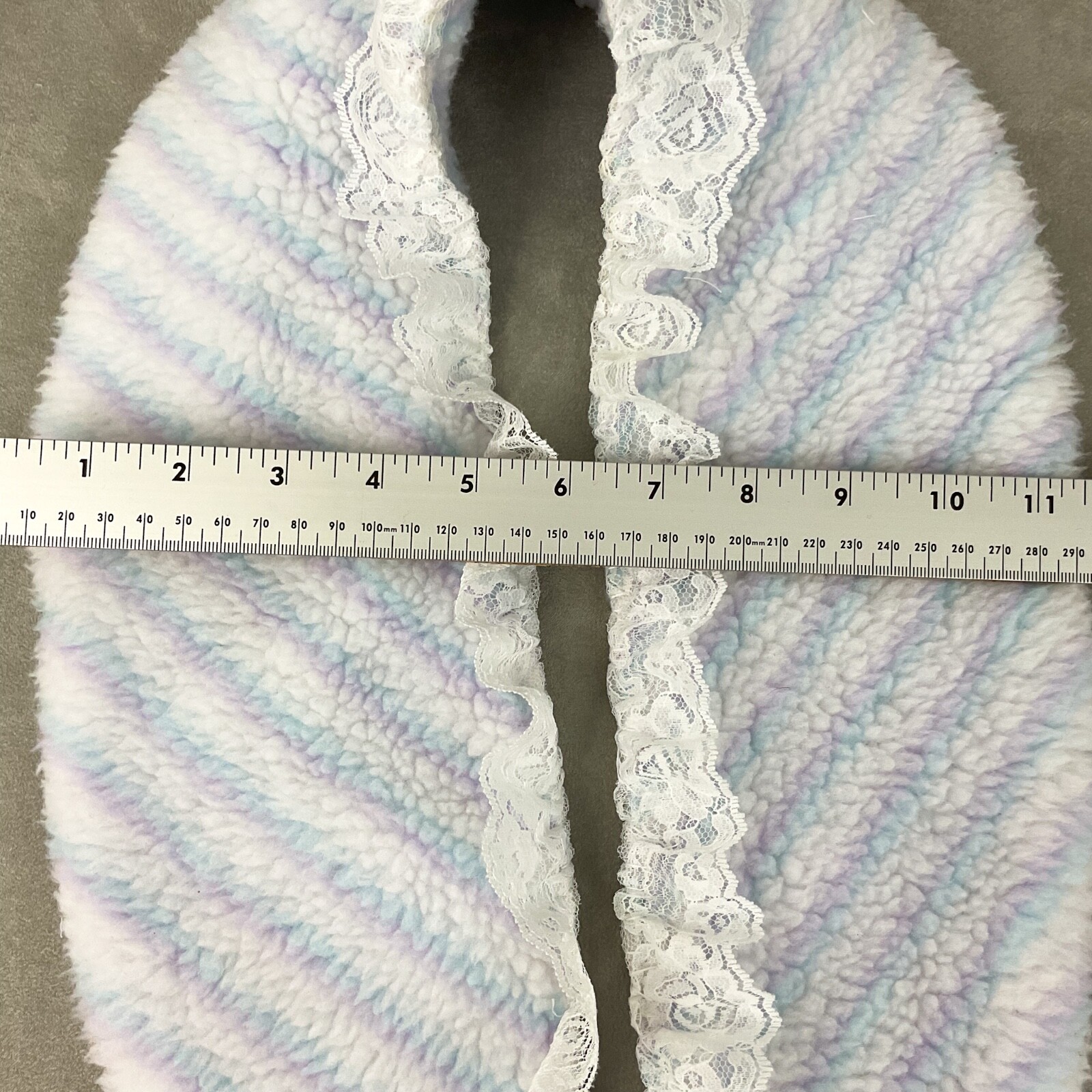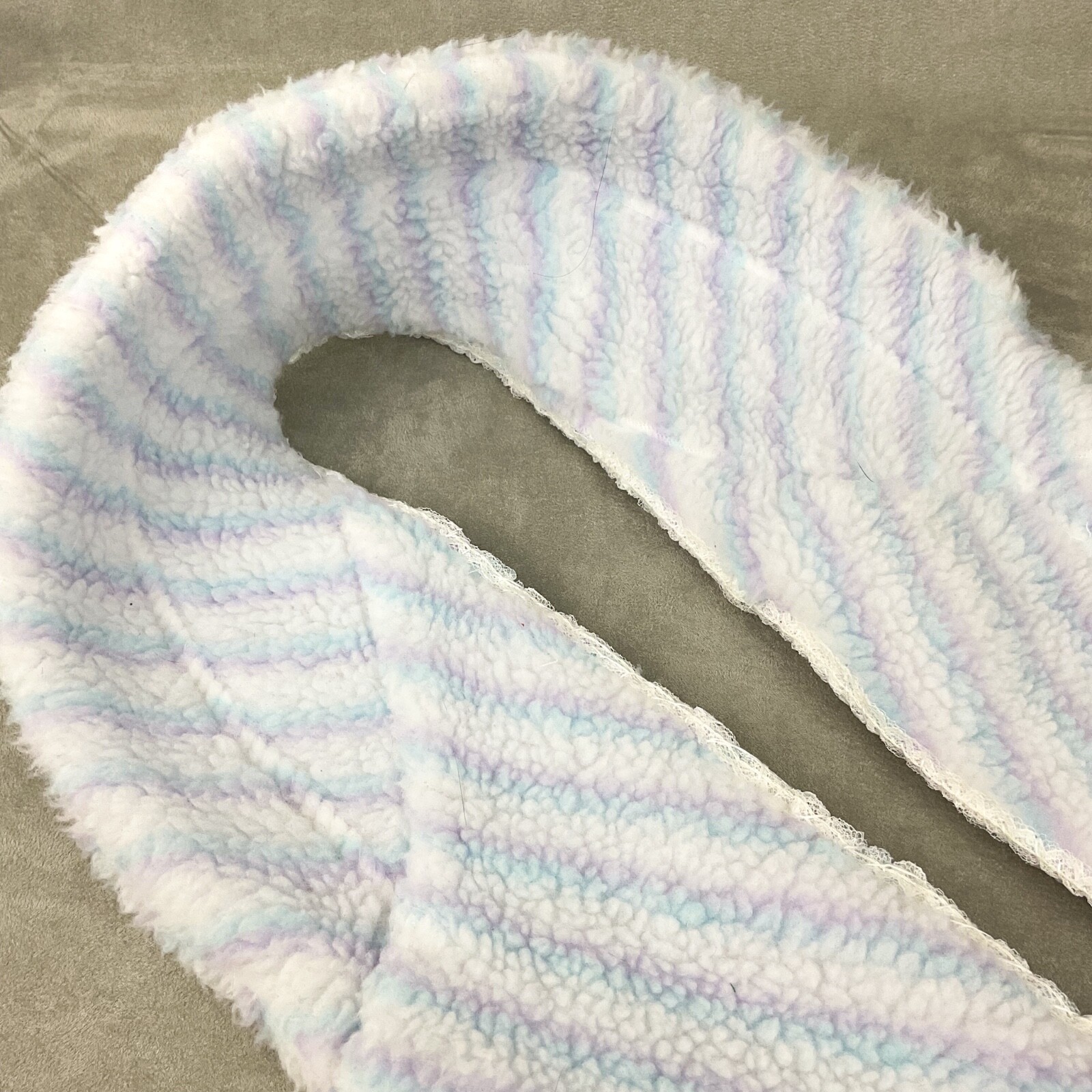 как выглядит Upcycled vintage 60s pastel striped faux sherpa detachable shawl collar OOAK фото