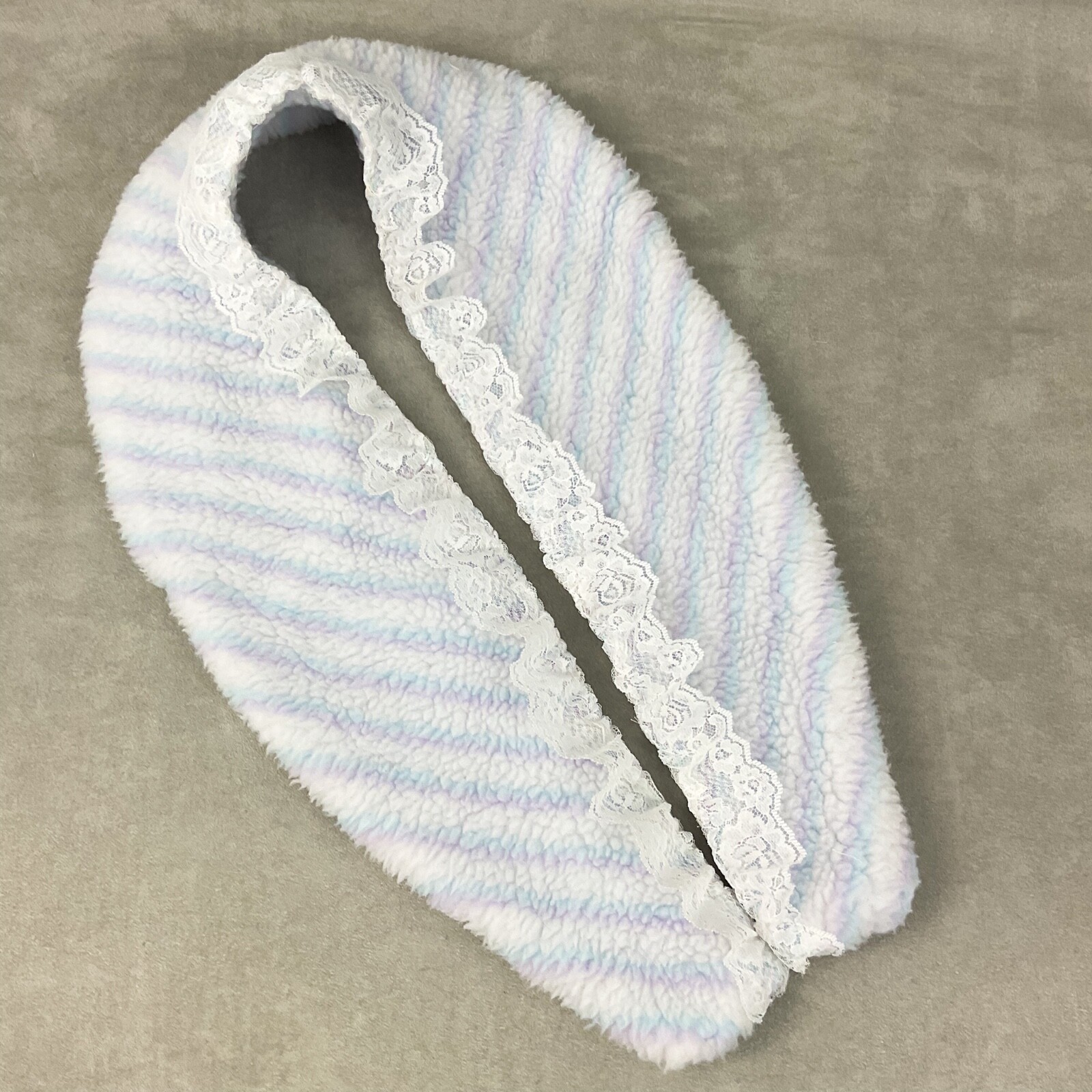 Upcycled vintage 60s pastel striped faux sherpa detachable shawl collar OOAK