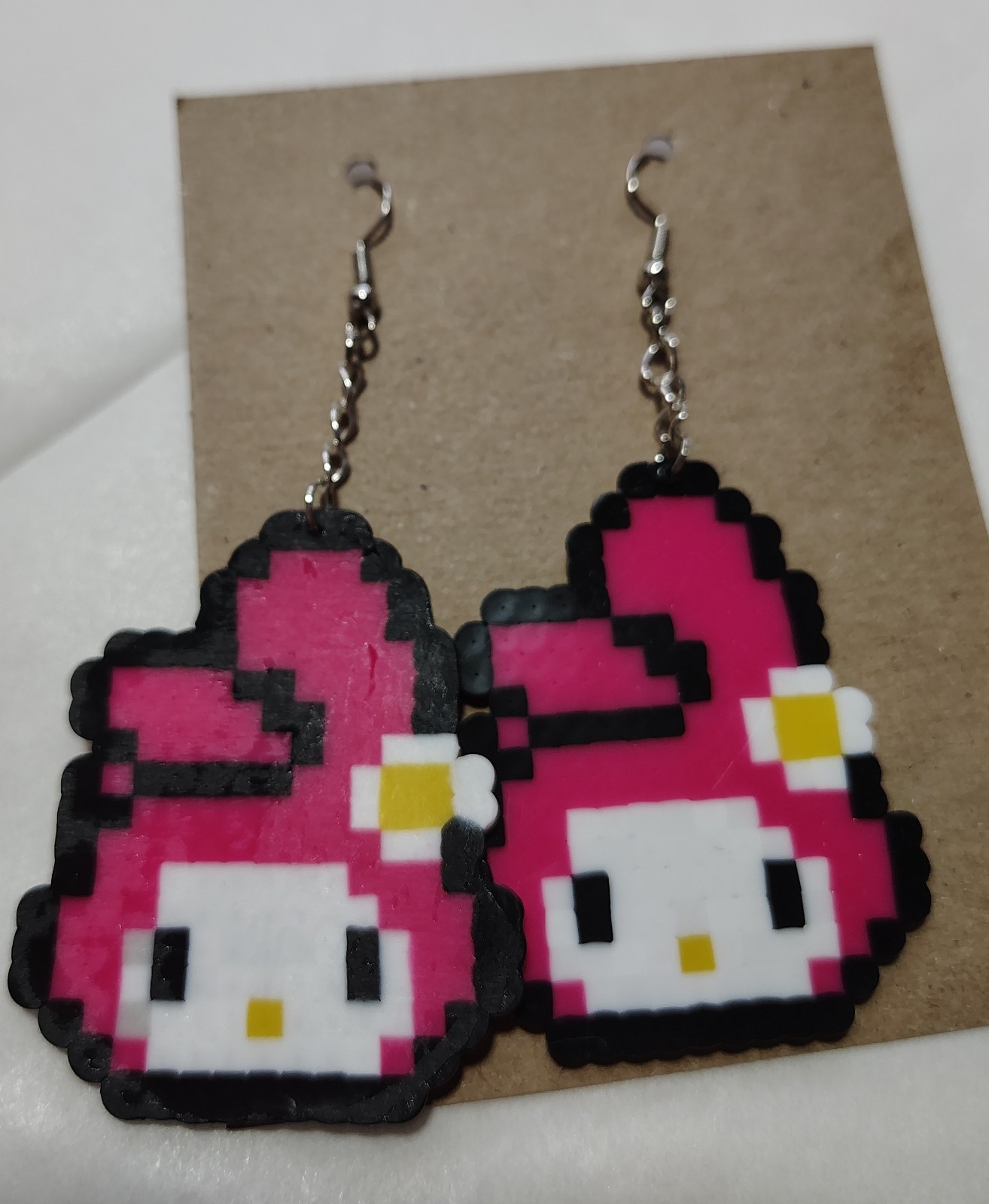 как выглядит My Melody Perler Bead Earrings Pixel Art фото