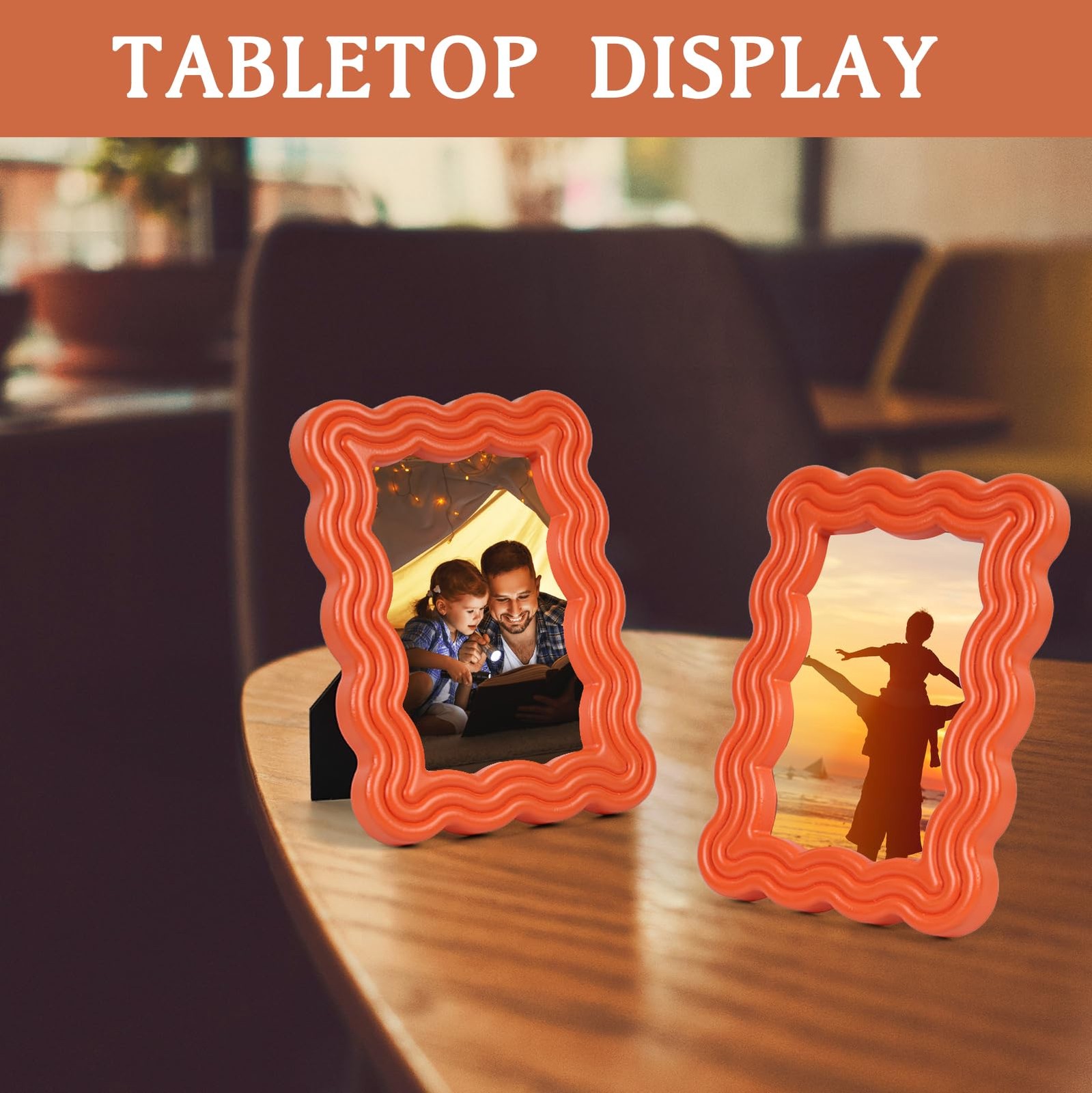4x6 Picture Frame, Display Pictures 4x6 with Mat, Wavy Edge Wood Photo Frame ...
