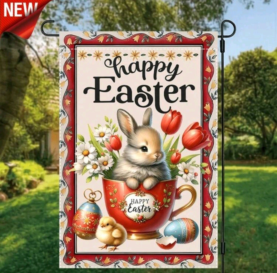 как выглядит Adorable Double-sided Spring Happy Easter Bunny 12X18 Garden Flag фото