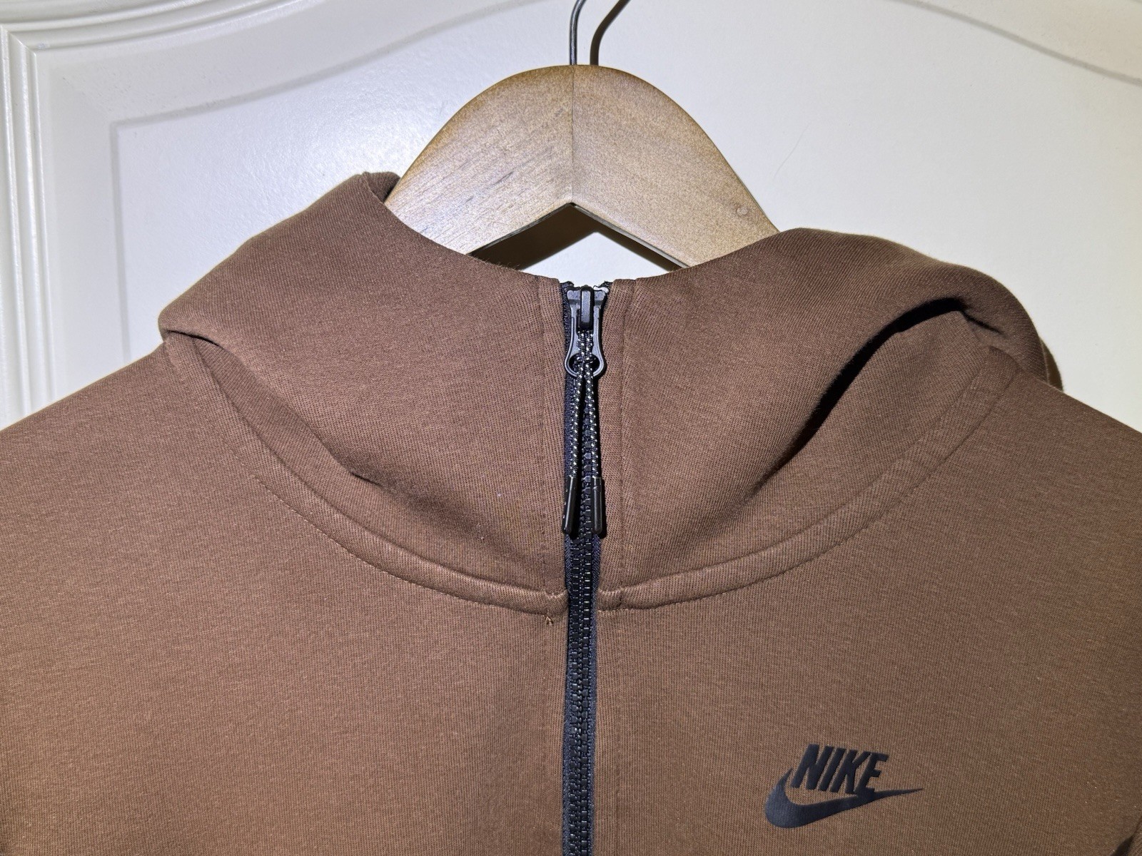 Nike Tech Fleece Hoodie Full Zip Hooded Brown Black Logo CU4489 Men Size Small