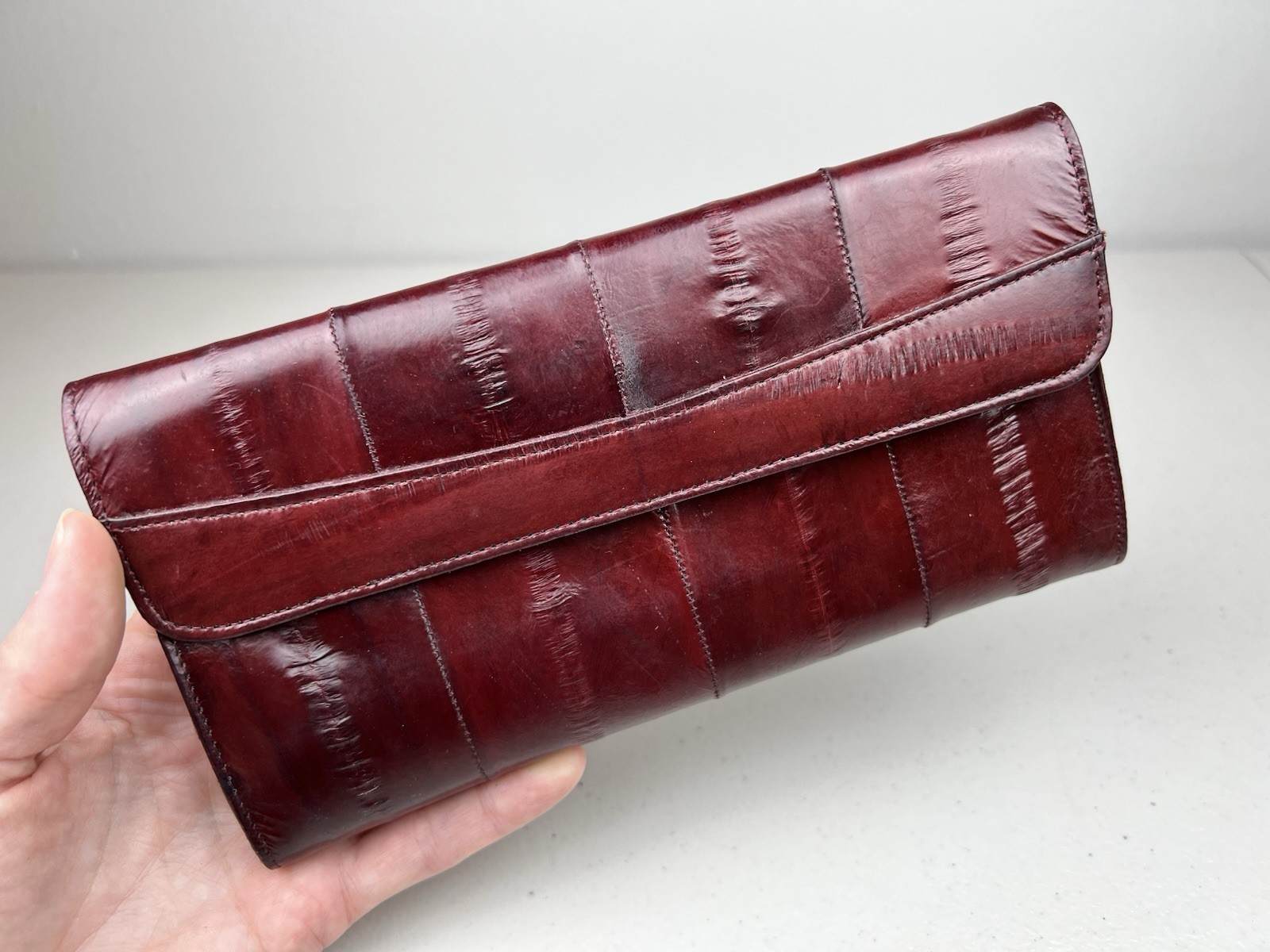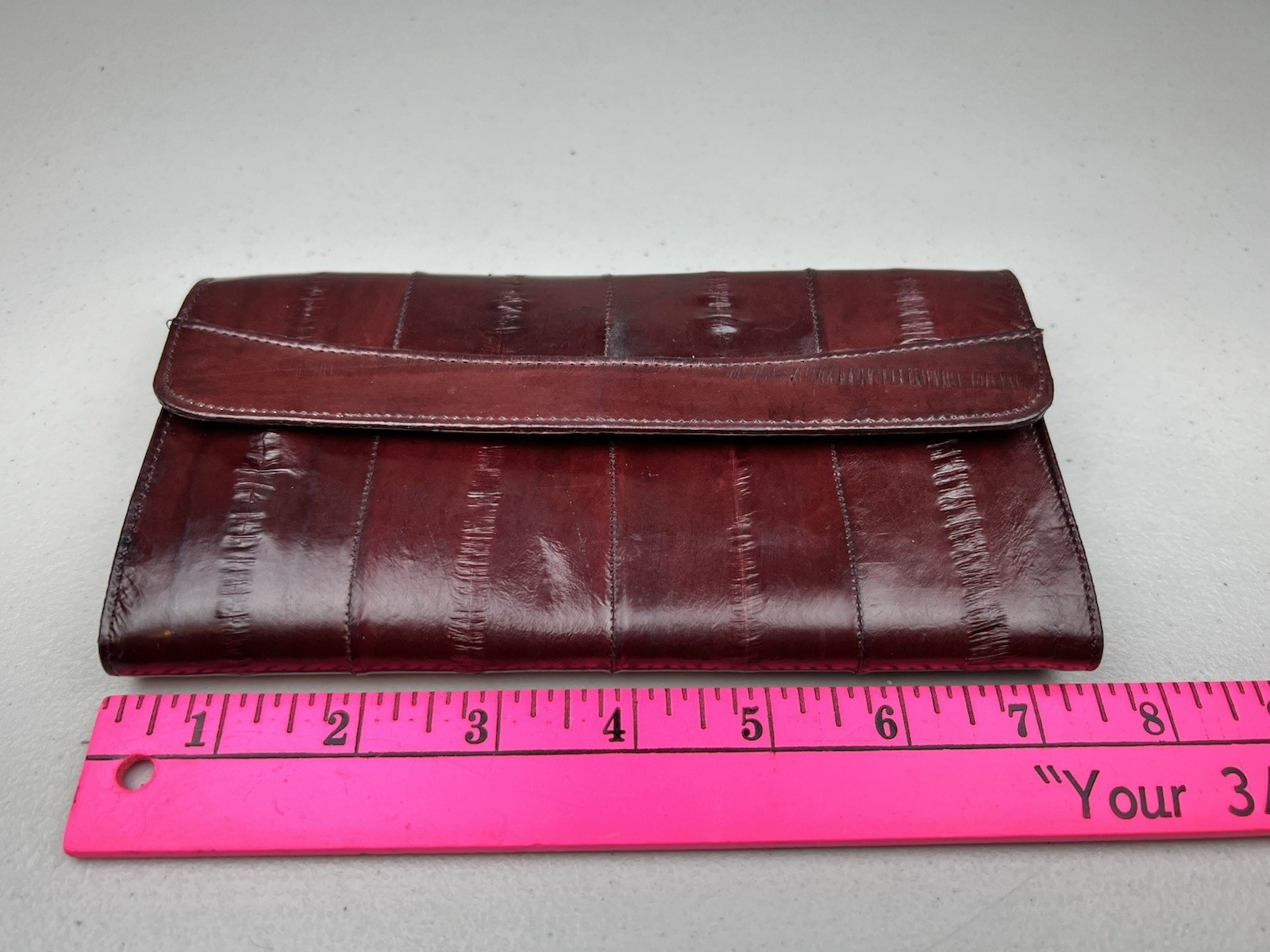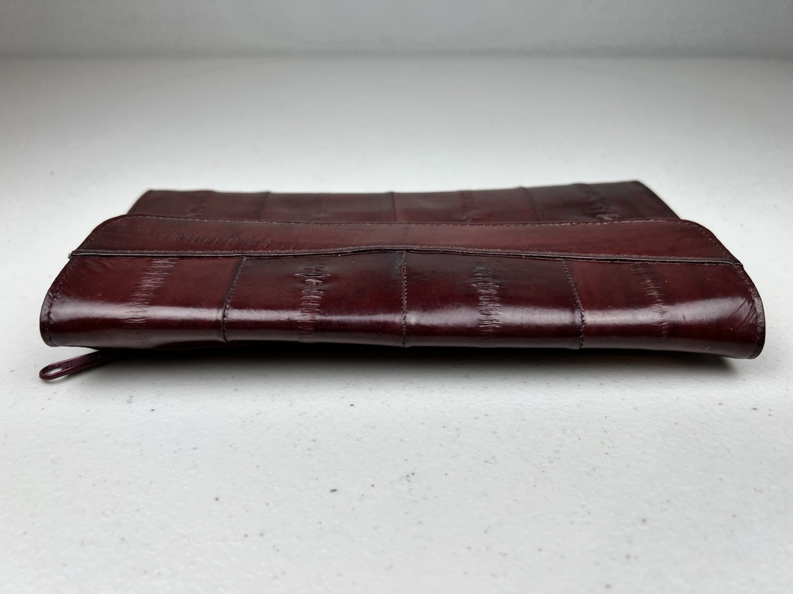 как выглядит Genuine EEL SKIN Bifold Leather Burgundy Wallet фото