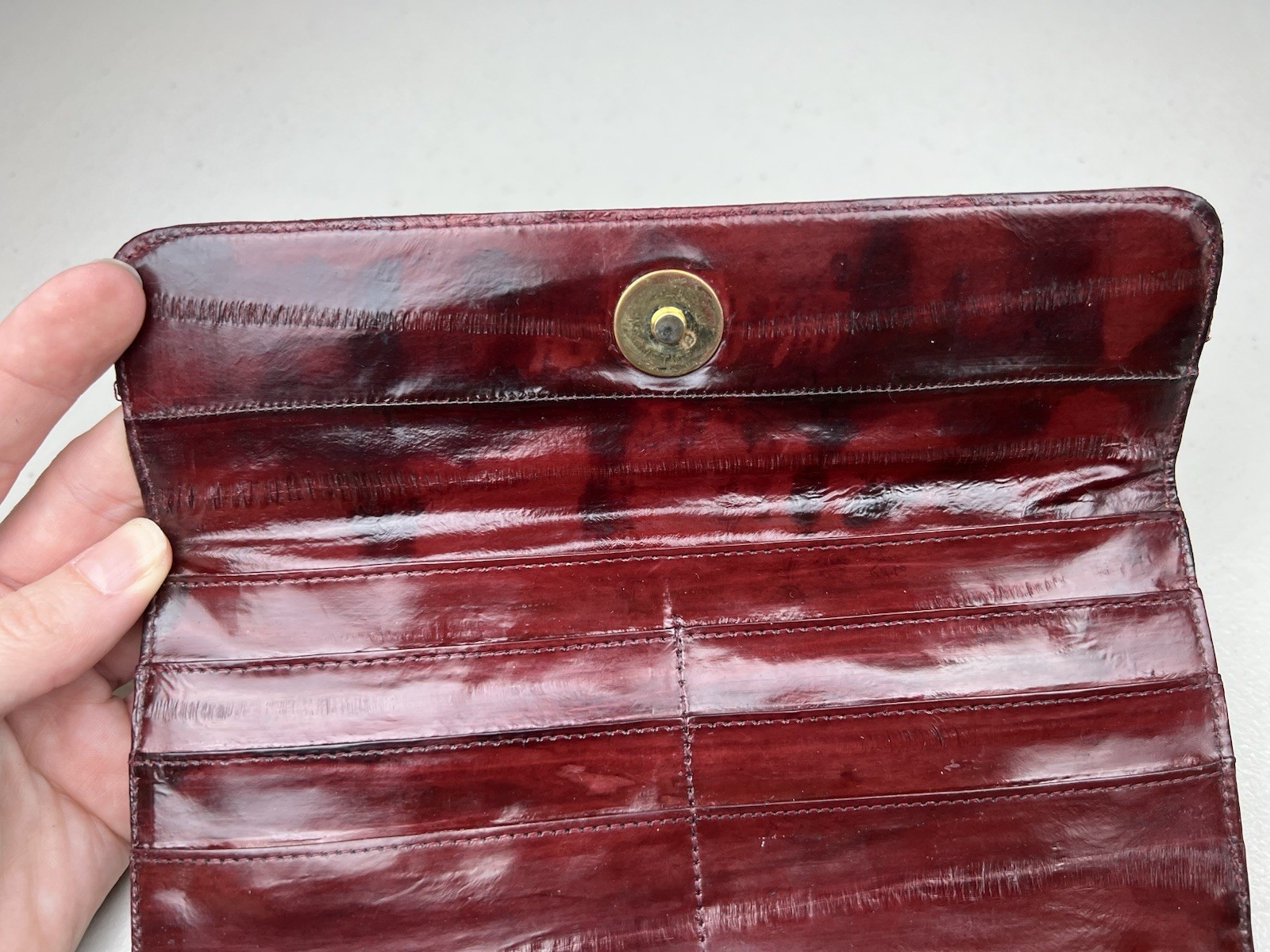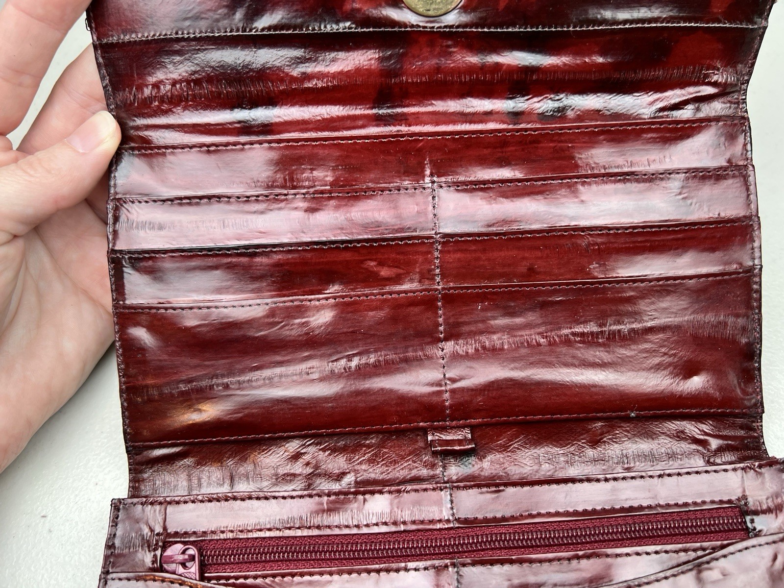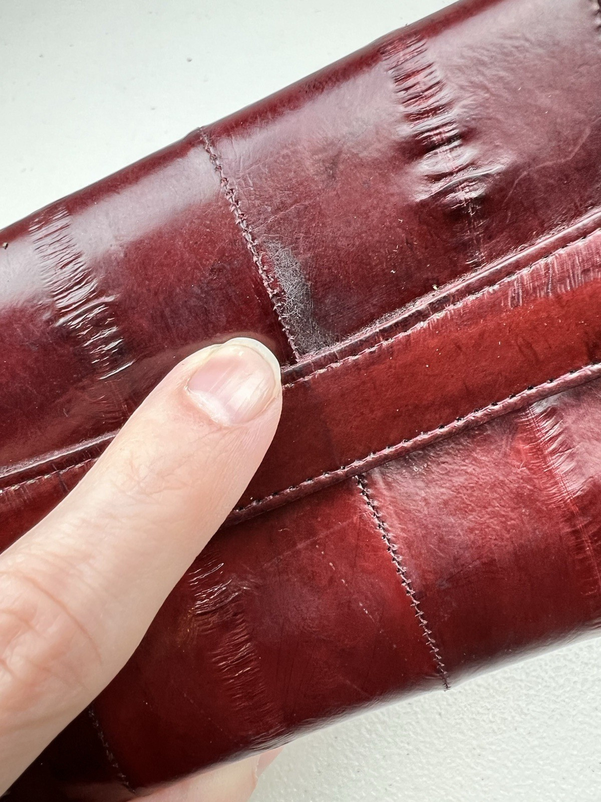 как выглядит Genuine EEL SKIN Bifold Leather Burgundy Wallet фото