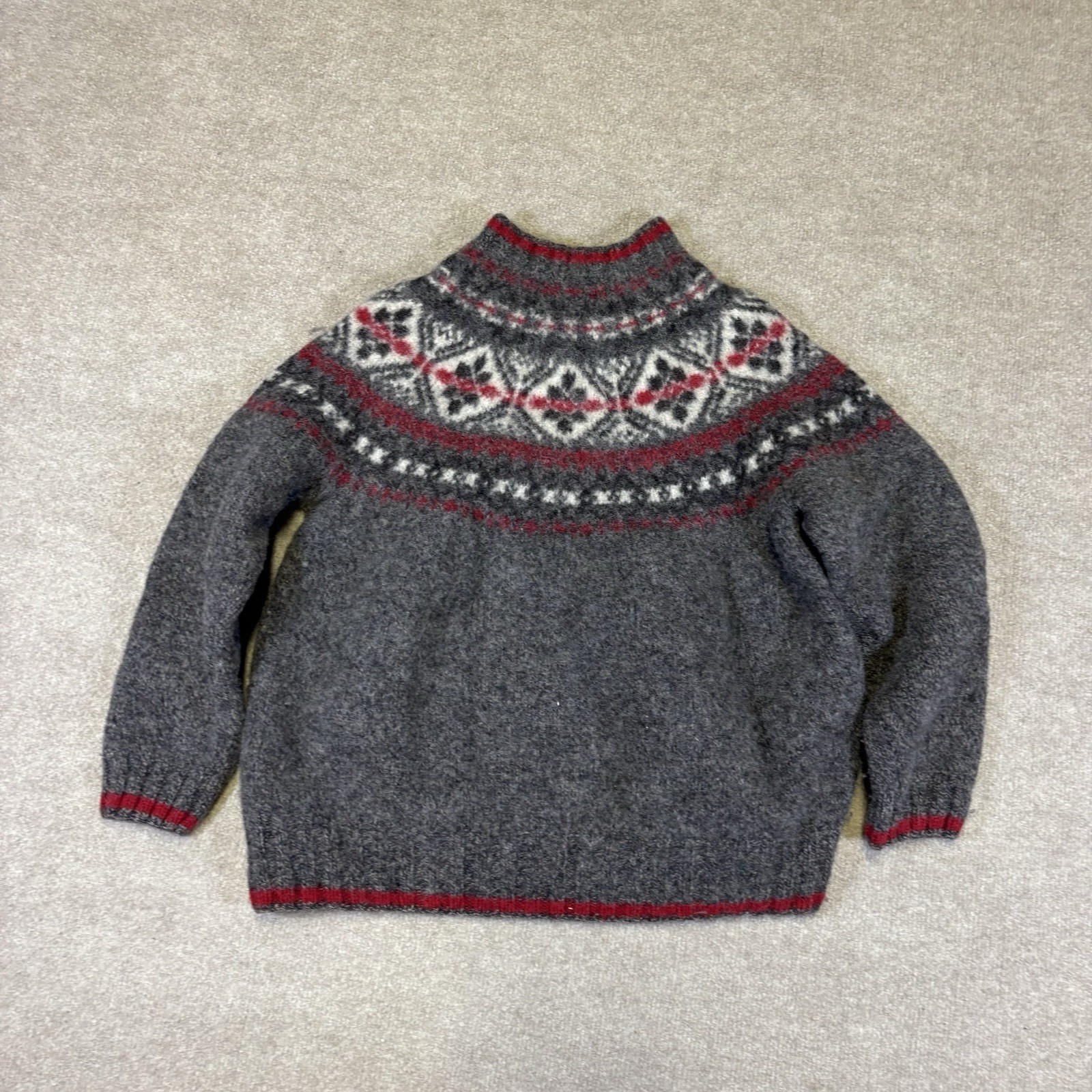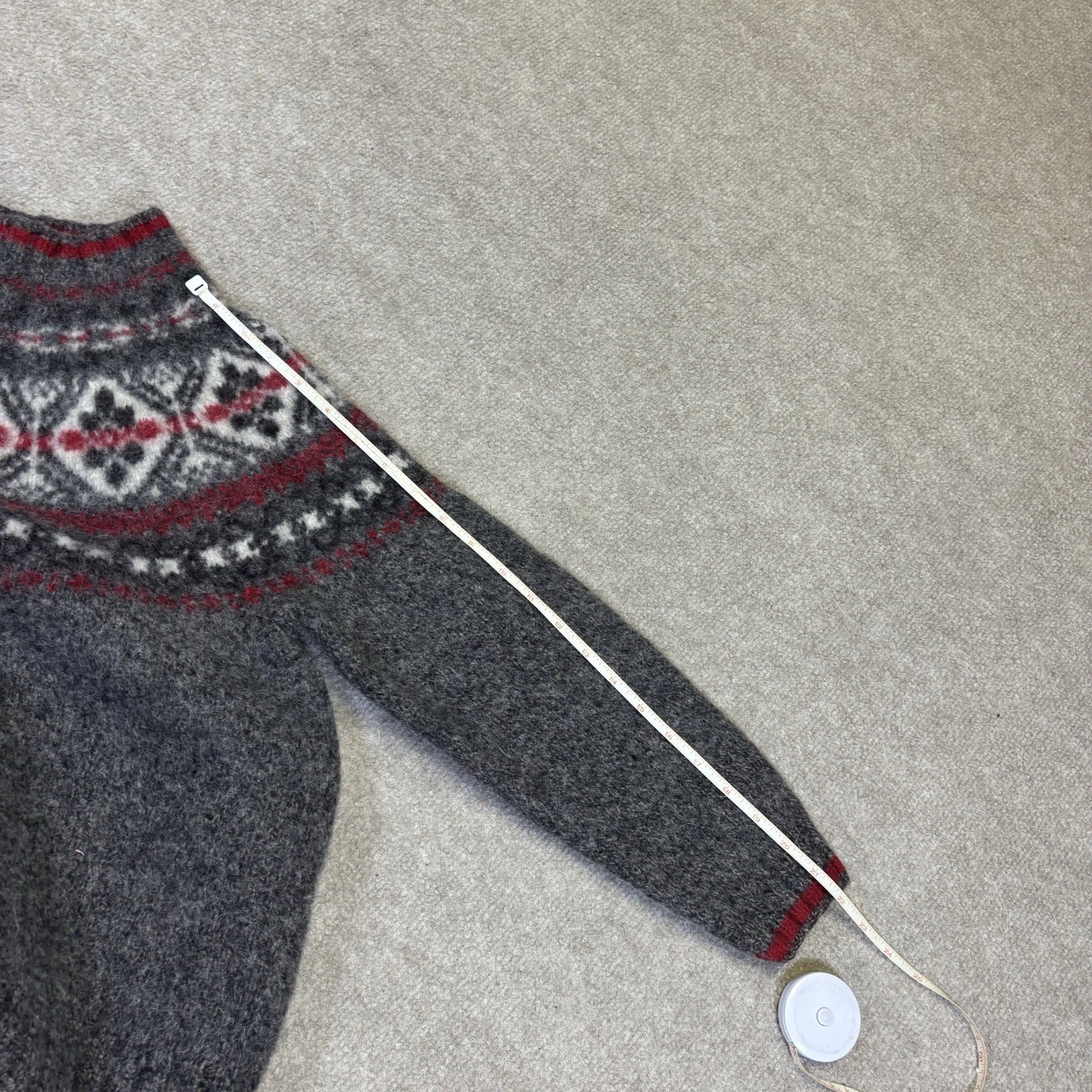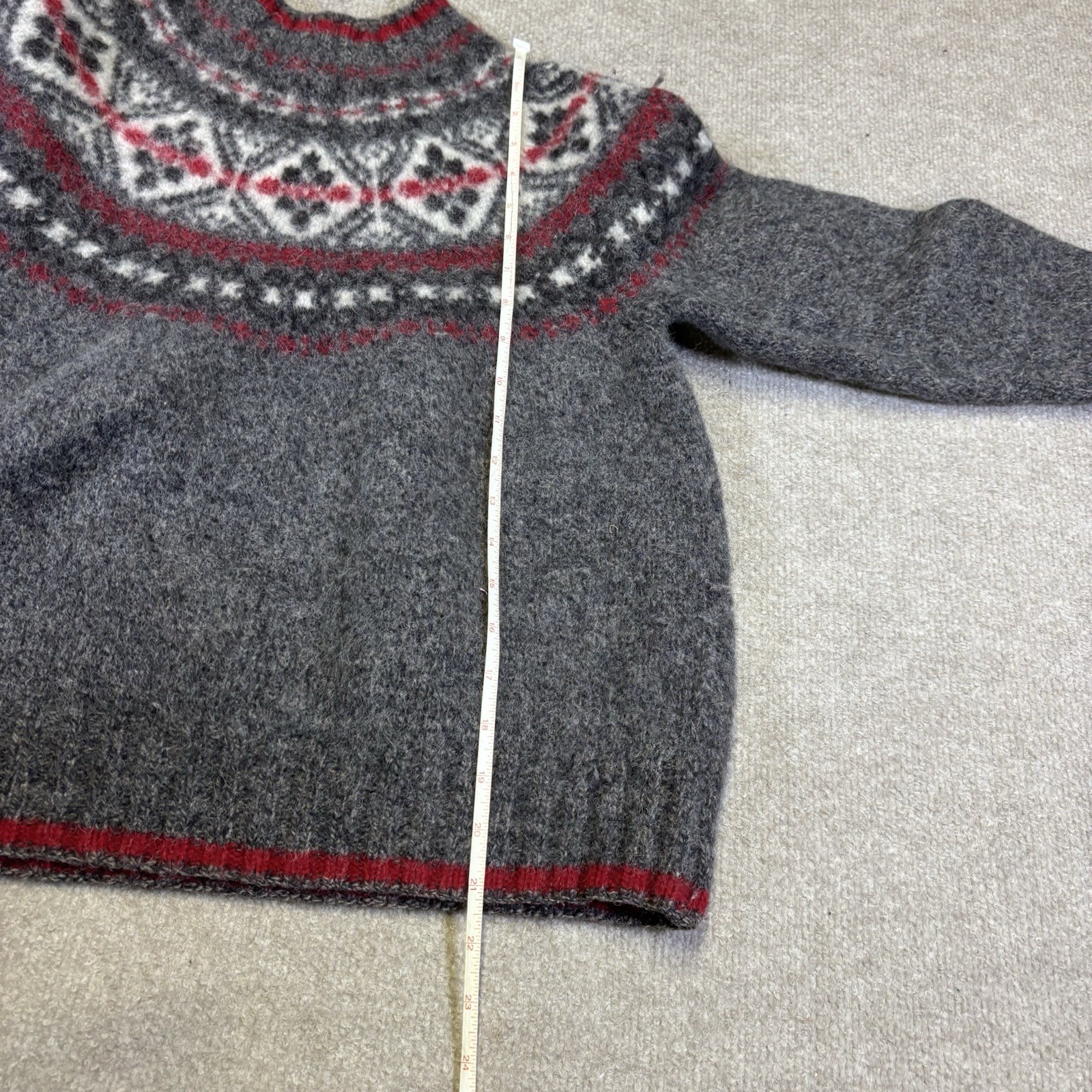 Vintage Eddie Bauer Legend Women Small 100 Wool Knit Sweater Fair Isle Gray Red