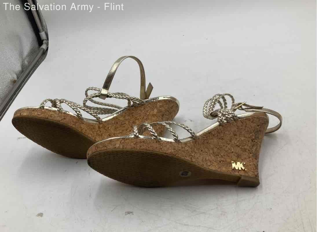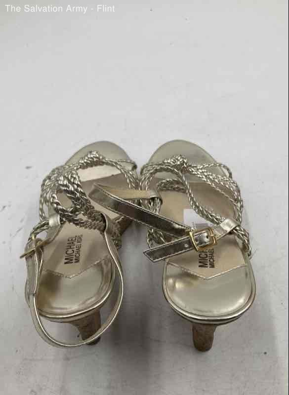 Michael Kors Womens Gold Open Toe Wedge Heel Ankle Strap Sandals Size 10