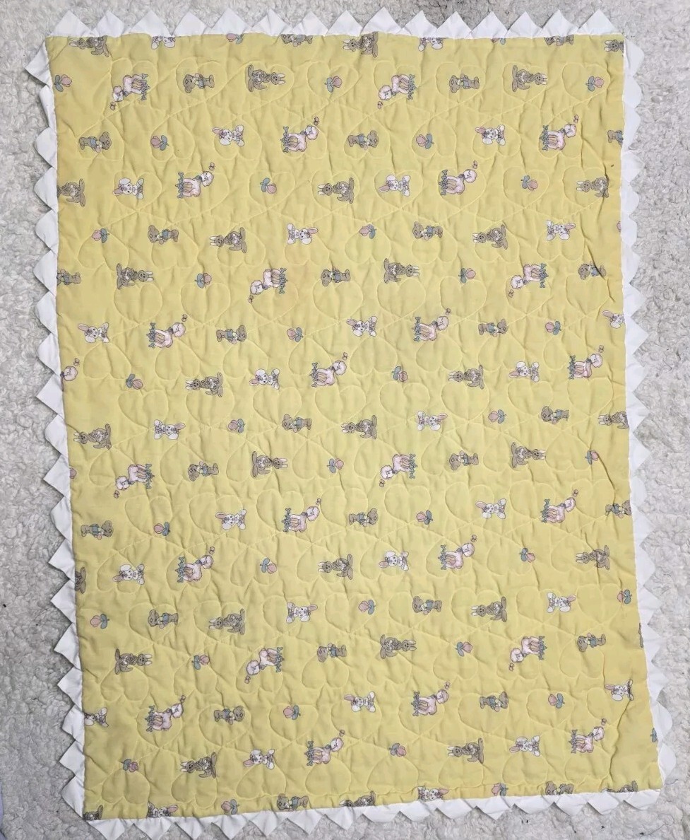 как выглядит Vintage Precious Moments Baby Crib Blanket W/satin Trim Girl Boy Angels Quilt фото
