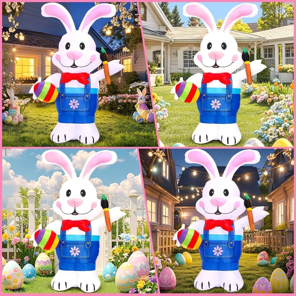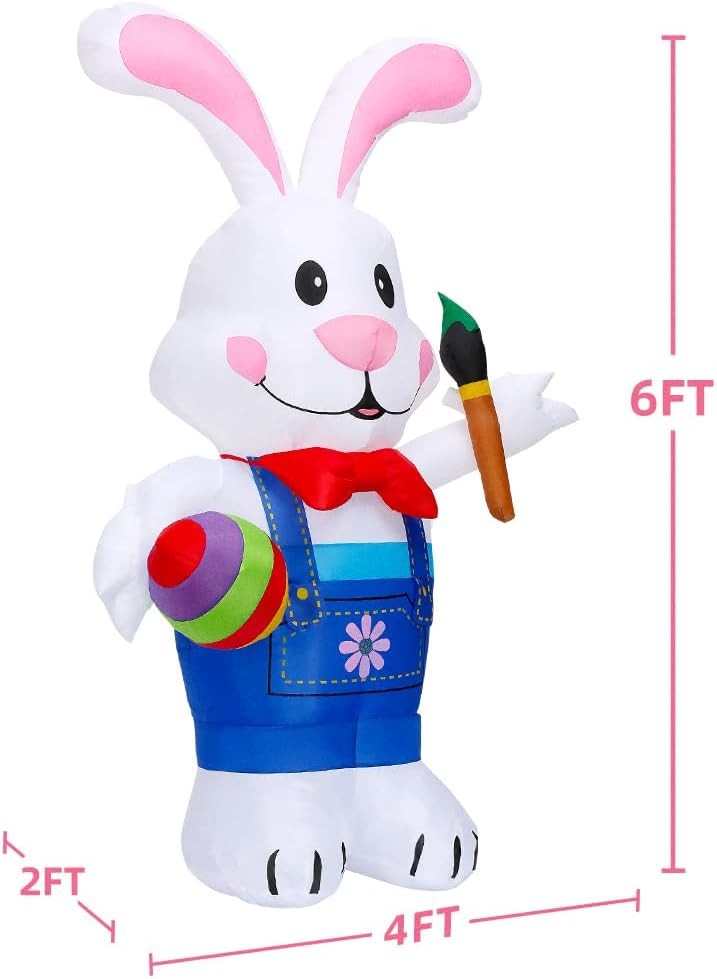 6 Ft. Easter Inflatable Bunny, Built in LED Lights -Outdoor Yard Decoration