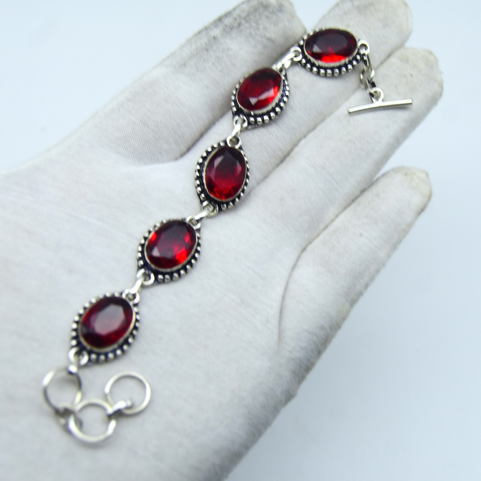 как выглядит Red Garnet Gemstone Handmade 925 Sterling Silver Jewelry Bracelet Size-7-8" фото