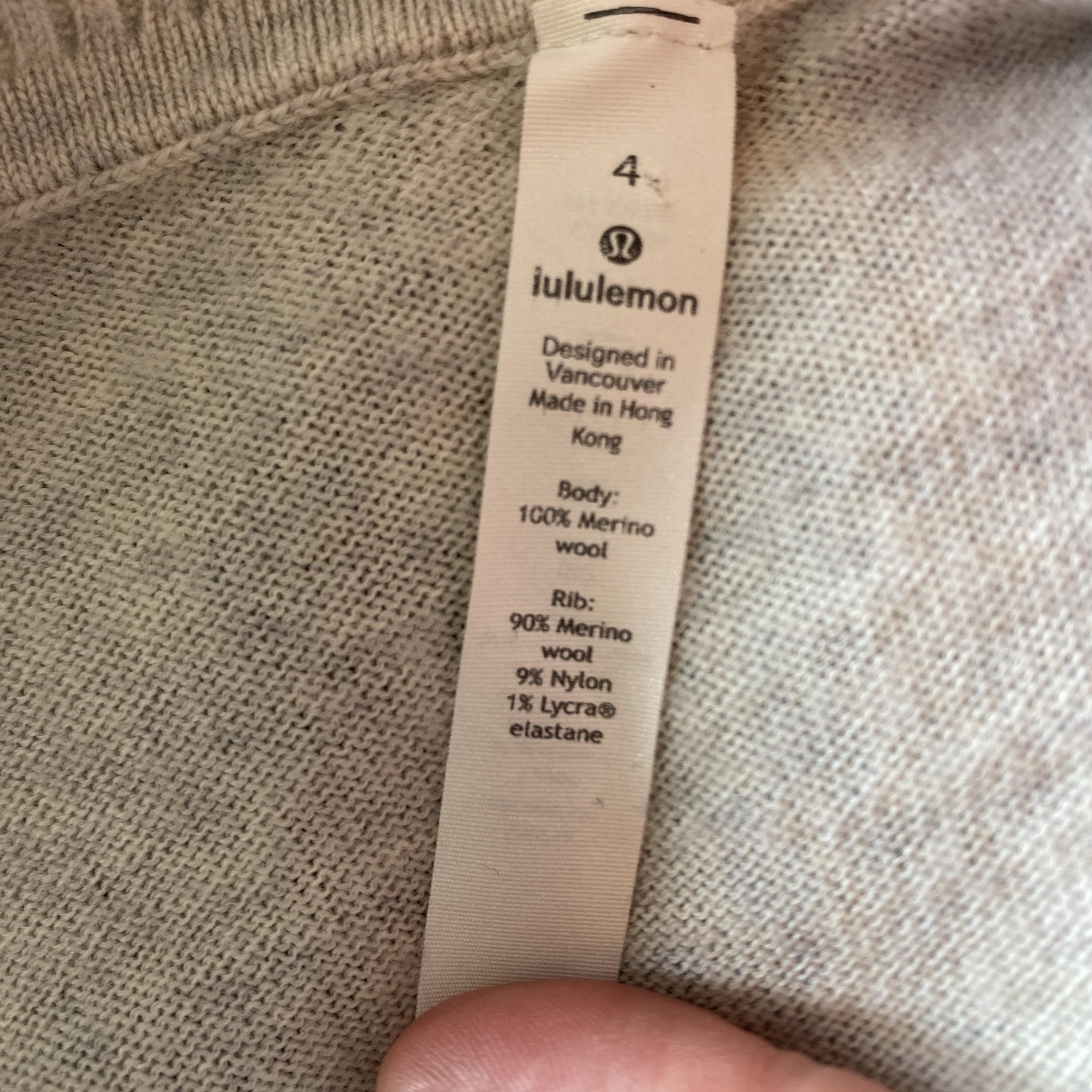 как выглядит Lululemon Cardigan Sweater Womens 4 Beige Merino Wool Open Front Pockets фото