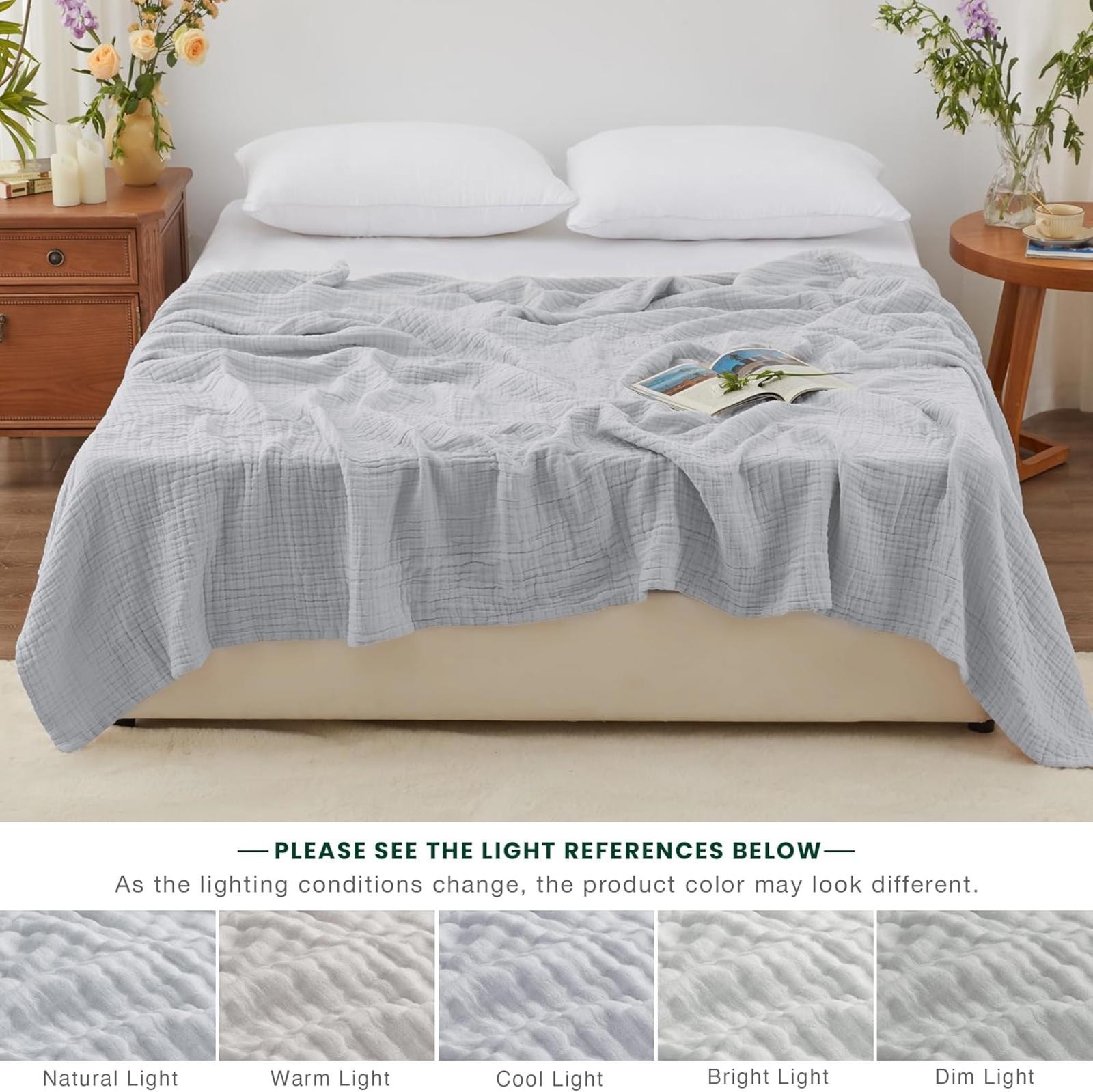 Love's cabin 6 Layer 100 Cotton Muslin Blanket, 90x90 Muslin Blanket Queen