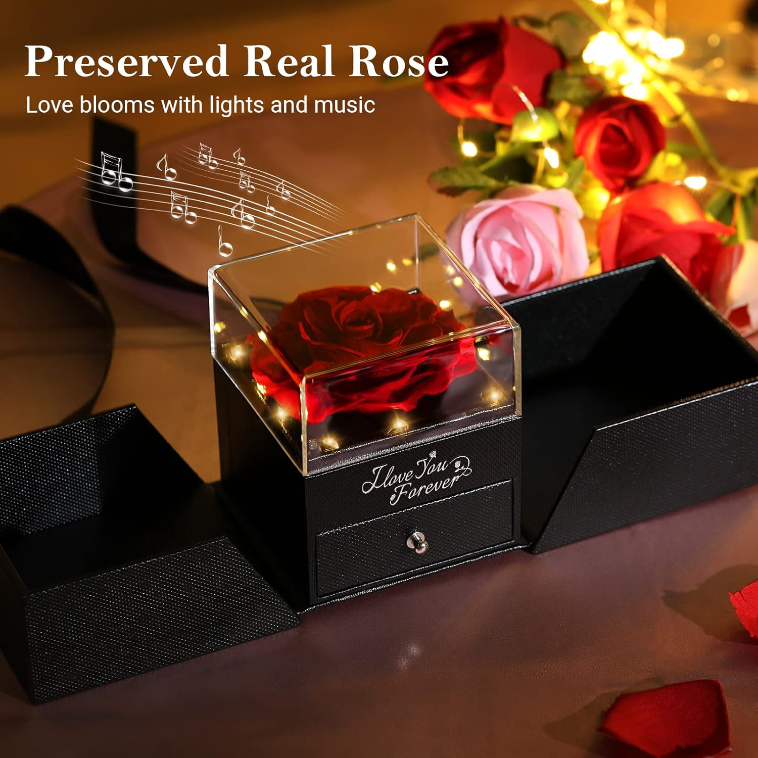 Preserved Rose Gifts for Women, Eternal Flower Rose Box with Heart Necklace, Rom