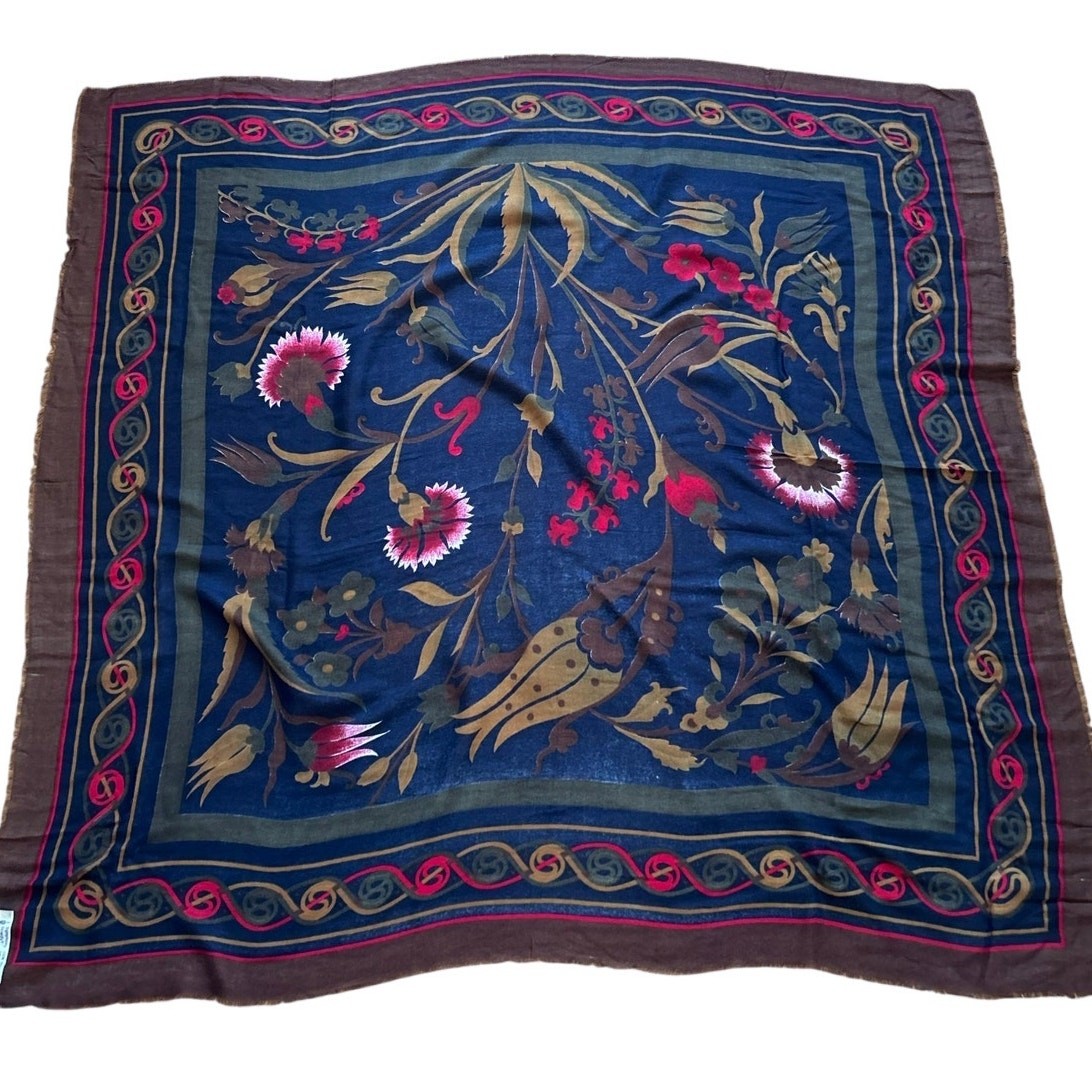 как выглядит Vintage Symphony Scarf Olive Black Brown Earth Tone Floral Print 45x45 фото