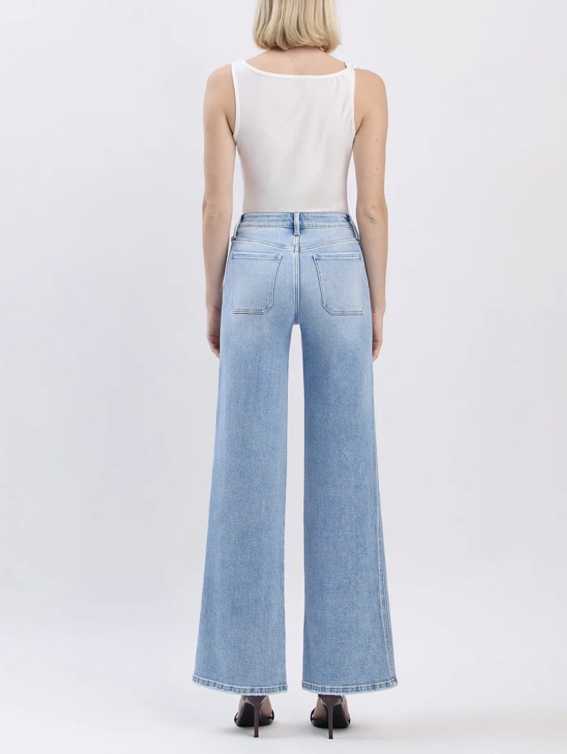 FLYING MONKEY APUS HIGH RISE WIDE TROUSER JEANS DARK PATCH POCKETS 30 STRETCH