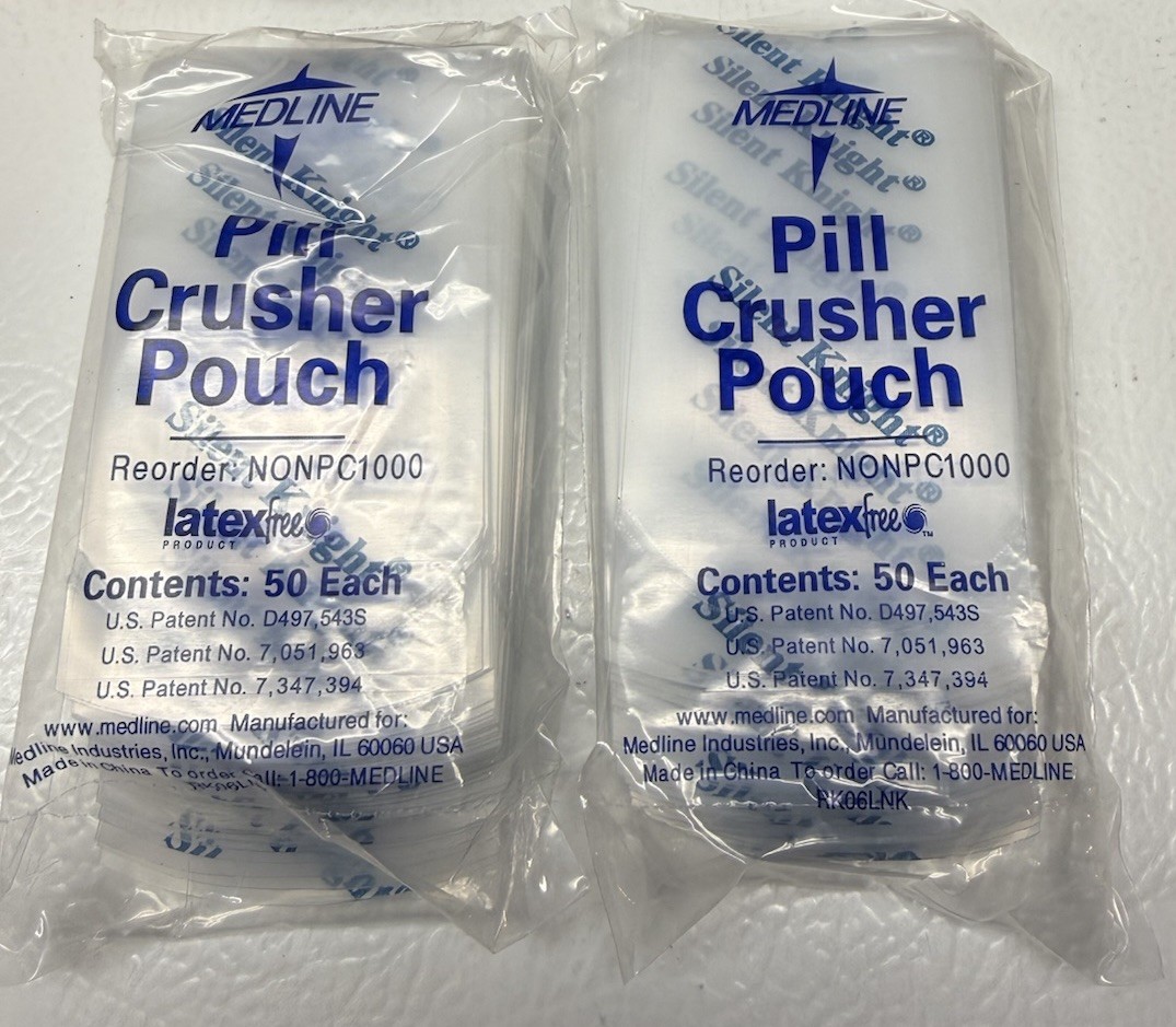 New Medline Silent Knight Pill Crusher 750 Pouches 15 Packs NONPC1000