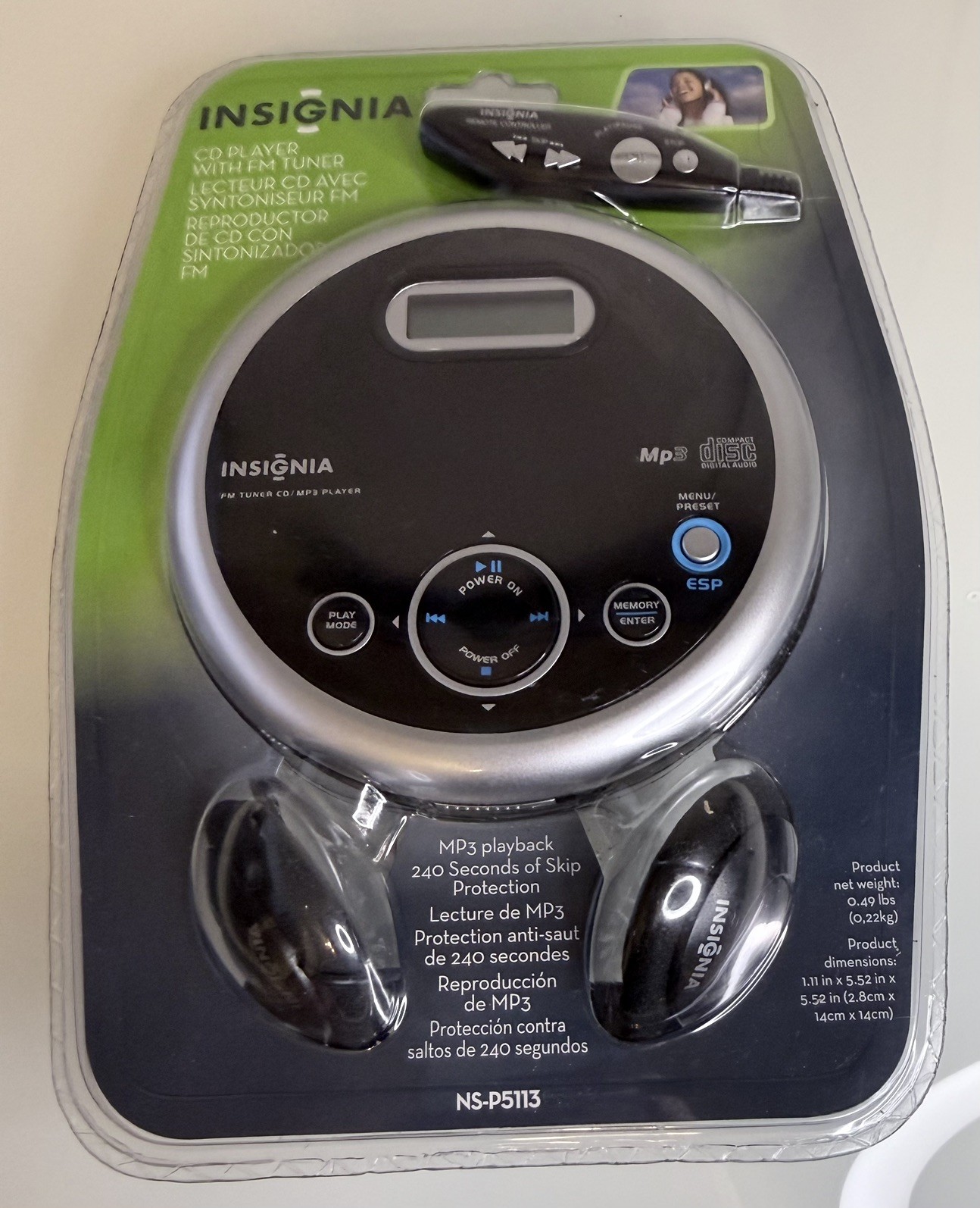 Insignia Portable CD Player w/ FM MP3 Playback Headphones NS-P5113 New