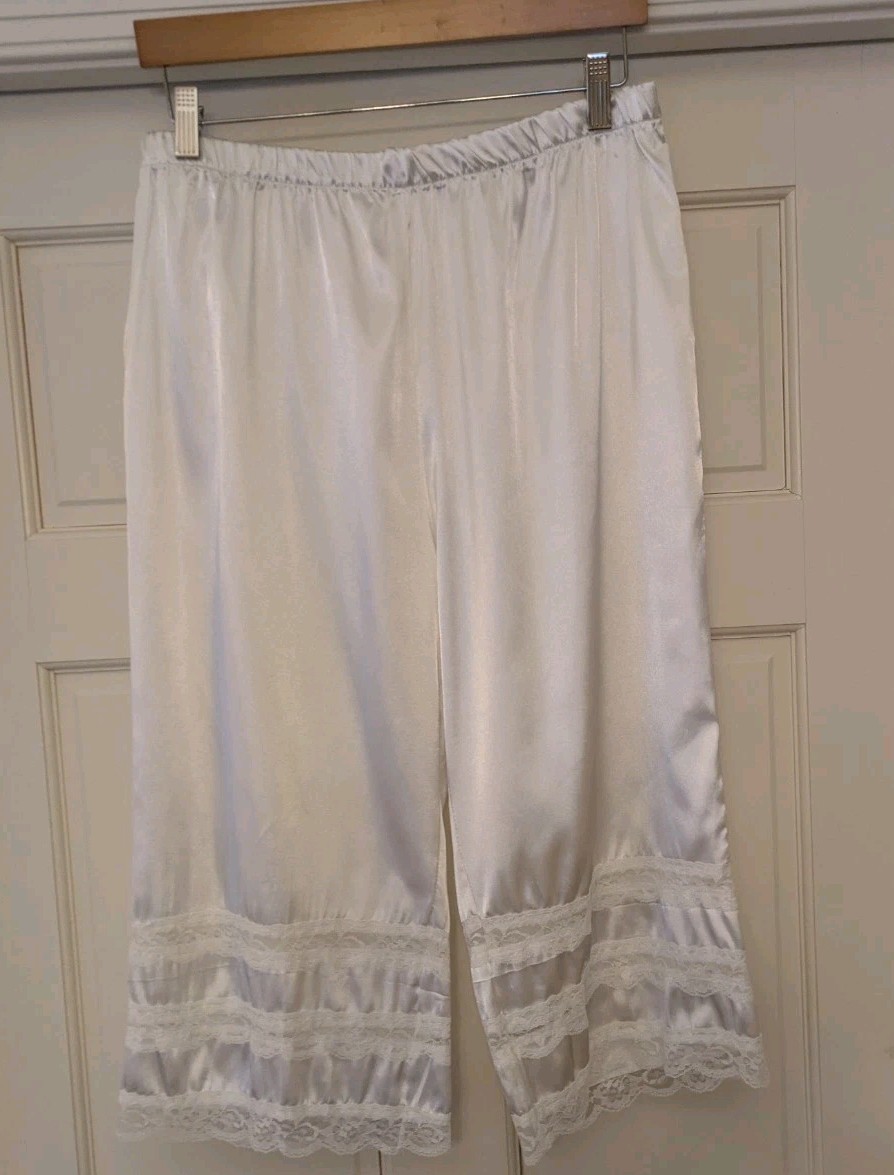 White Satin Lace Pettipants Sz XL Capri Slip Pants Coulotts Shiny