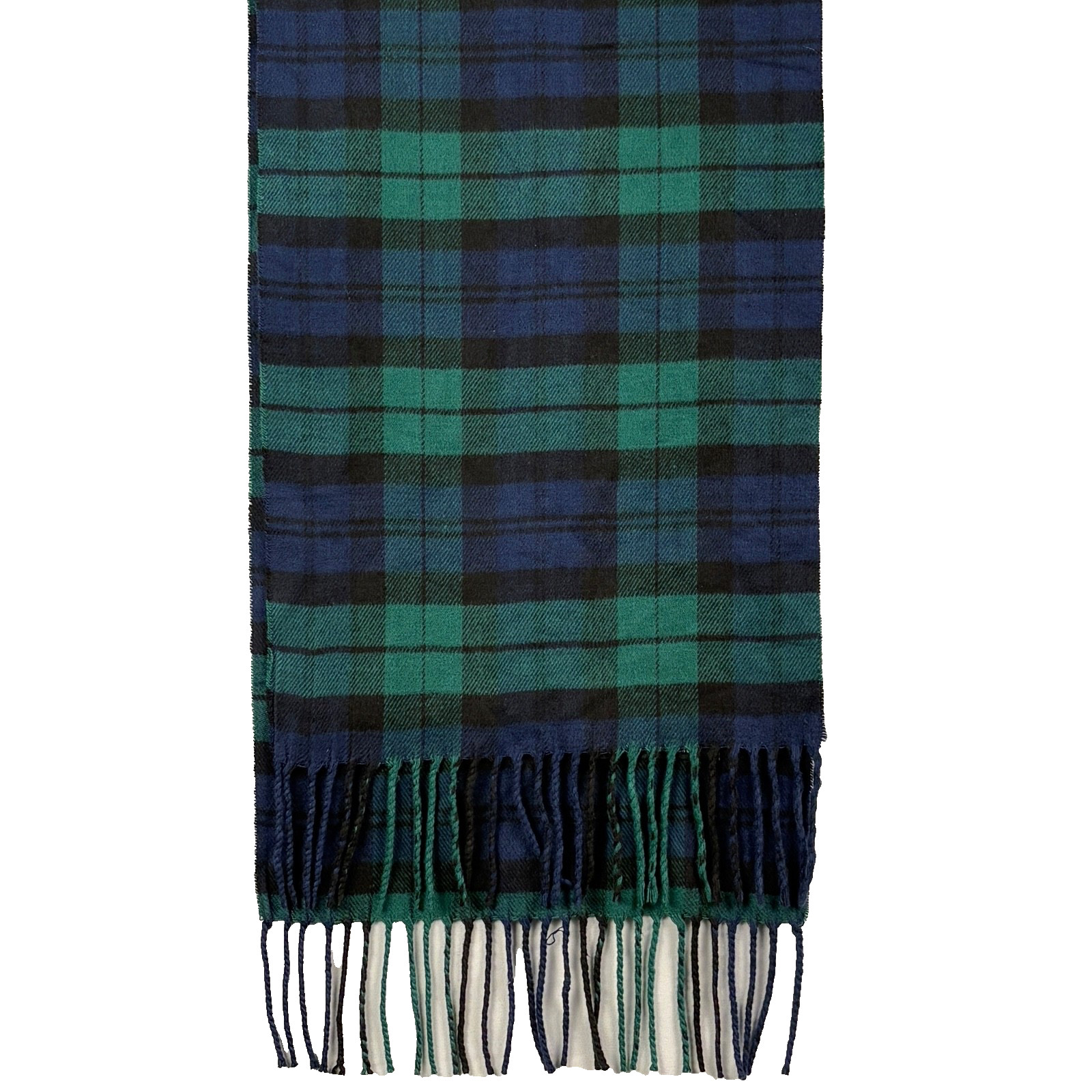 100 Cashmere Luxury Plaid Scarf Fringed Blue Green Made in Scotland 12 X 66