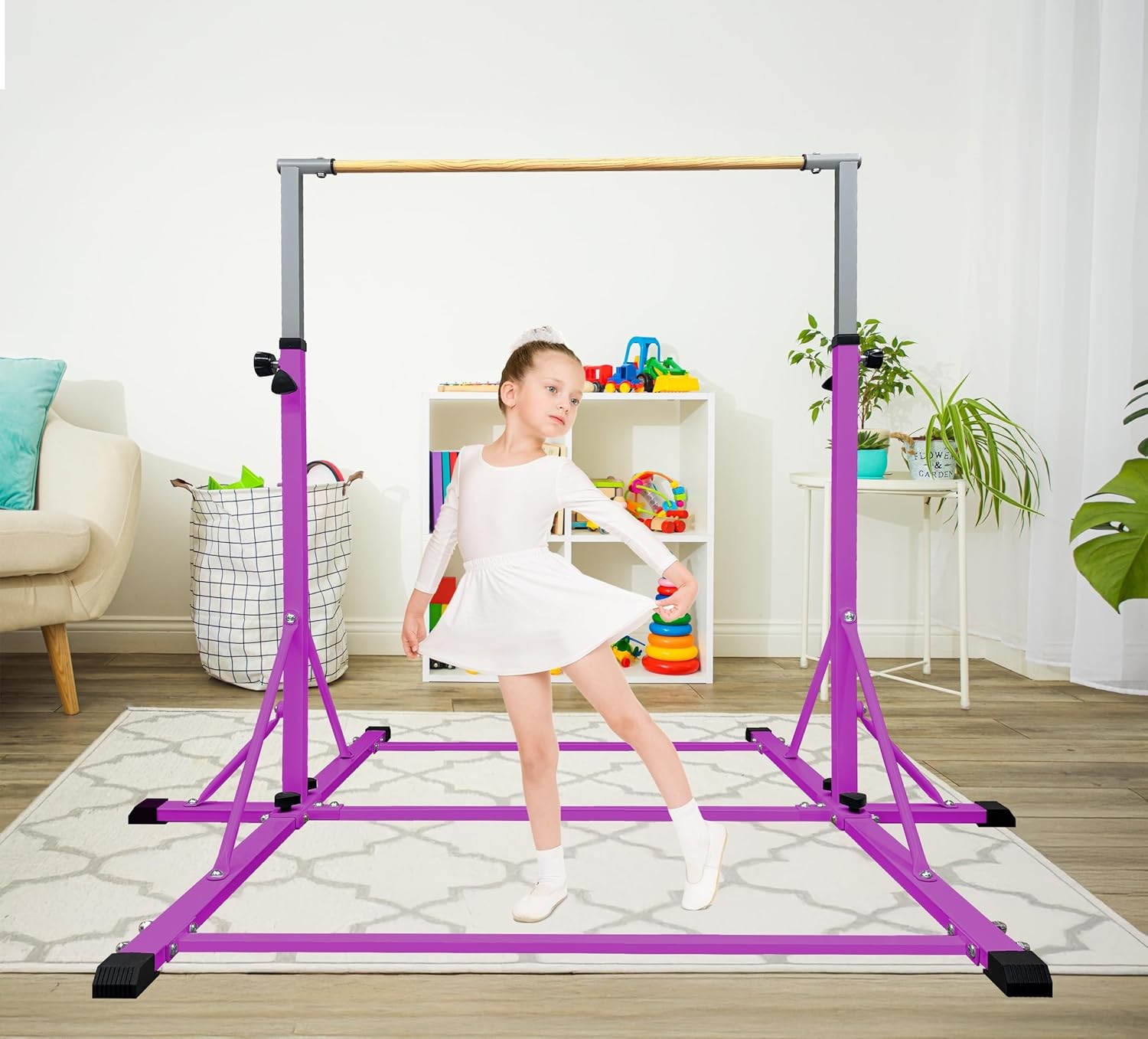 Gymnastics Bar Kids Ages 3-20 5FT Base Length 42 to 63 Adjustable Height