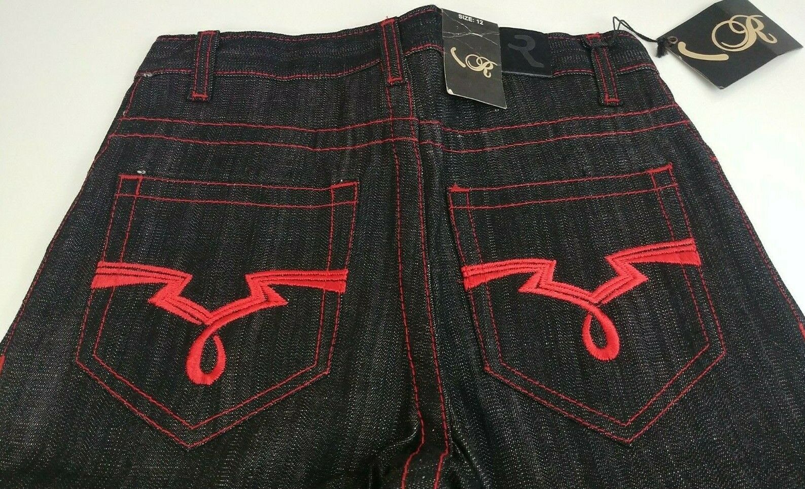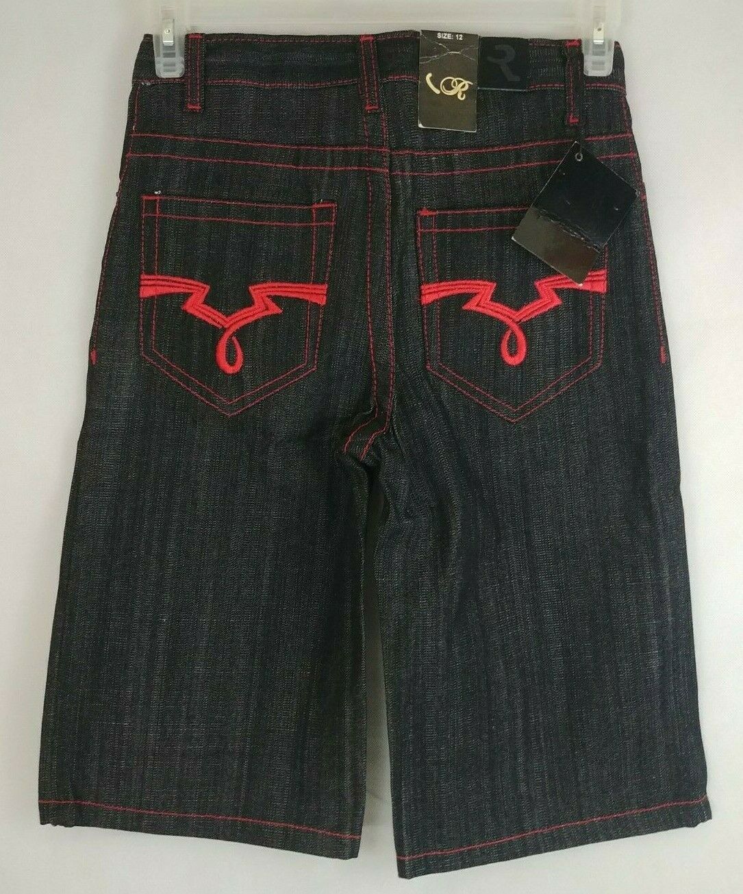 NWT RocaWear Mens Youth Black Emroidered Jean Shorts Size 12 Measurements Below