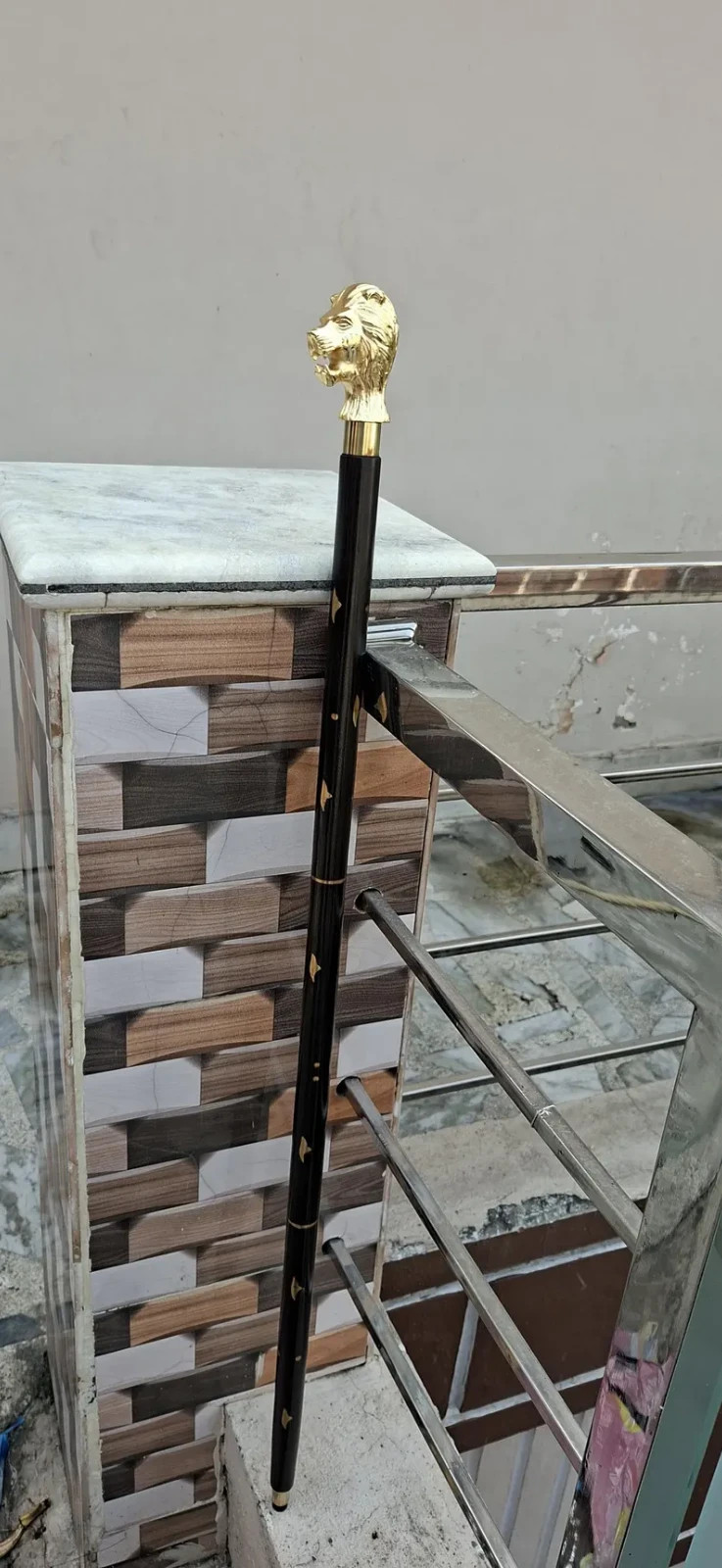 как выглядит Vintage Brass Lion Head Handle Wooden Walking Stick Cane Antique Style Men Women фото