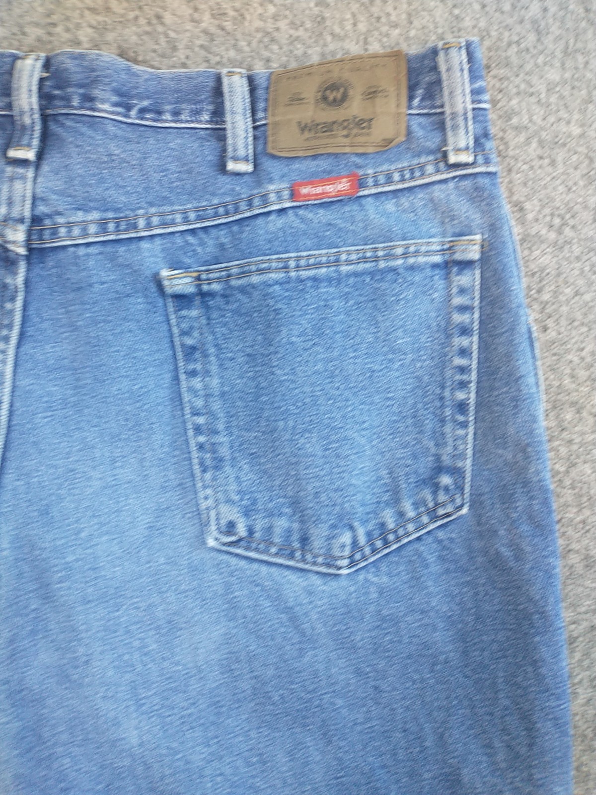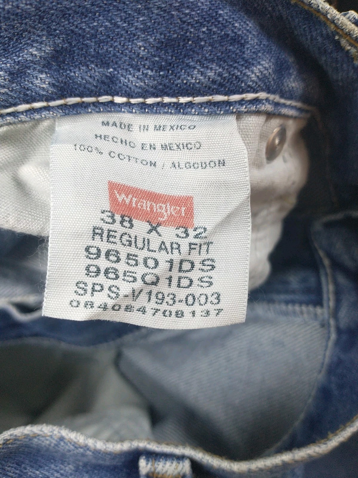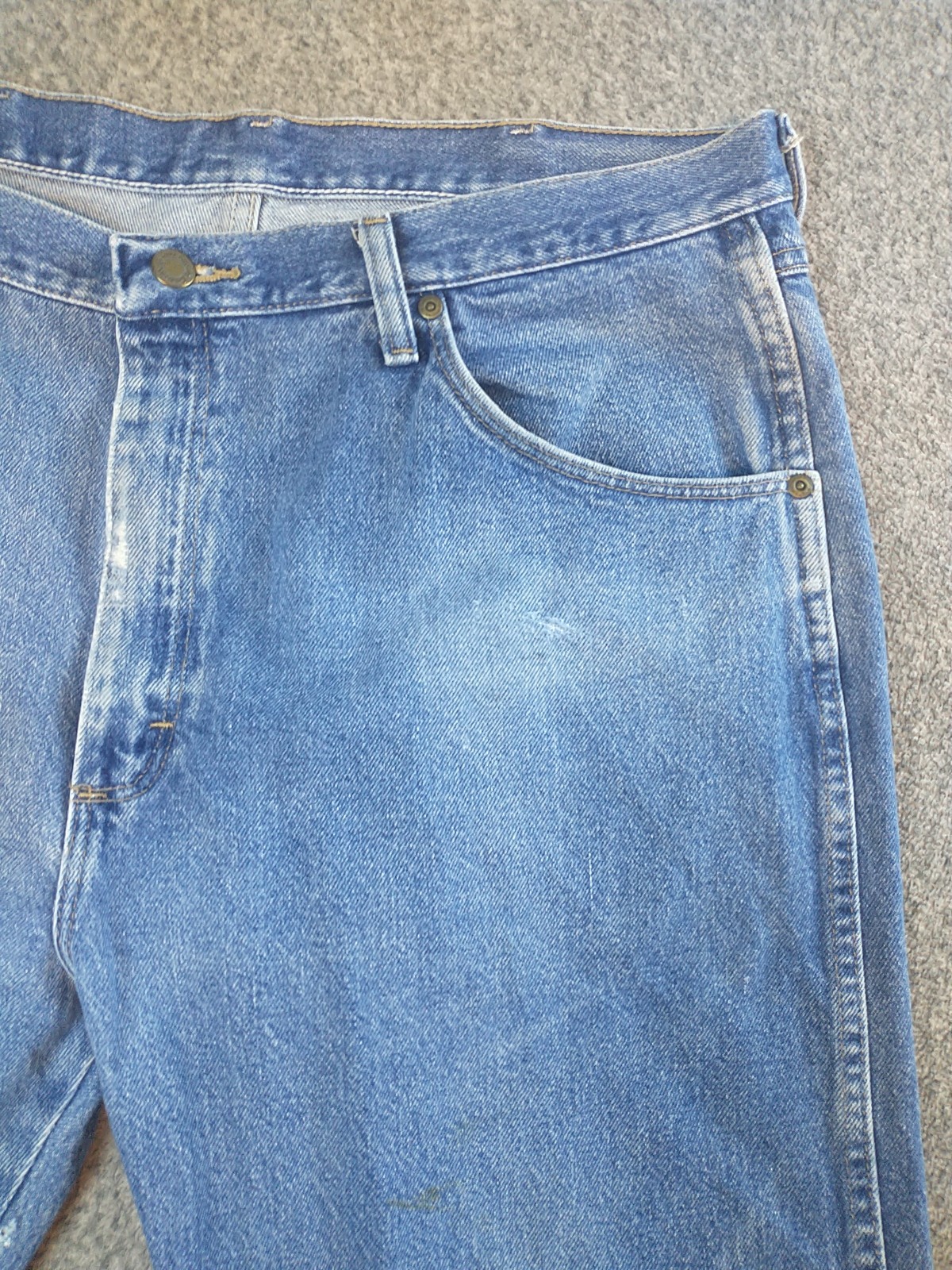 Wrangler Denim Blue Jeans Men's Size 38x31 Straight Leg Light Wash 96501DS Chore