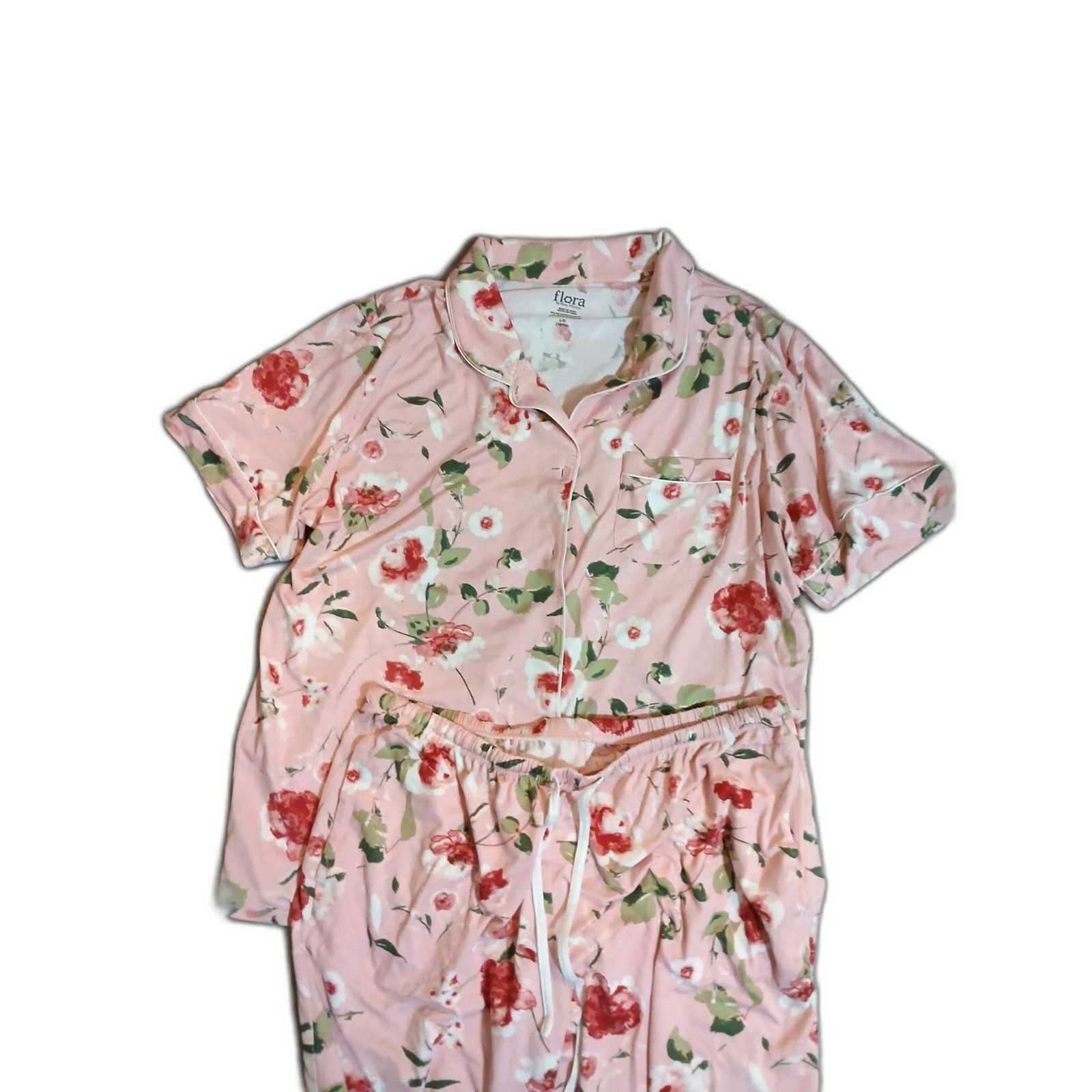 Flora by Flora Nikrooz pink floral short sleeve pajamas size L polyester